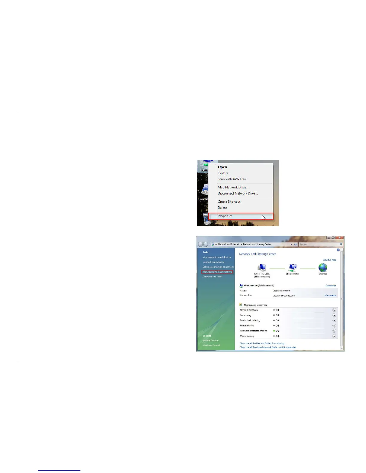 the Manage Network Connections link.