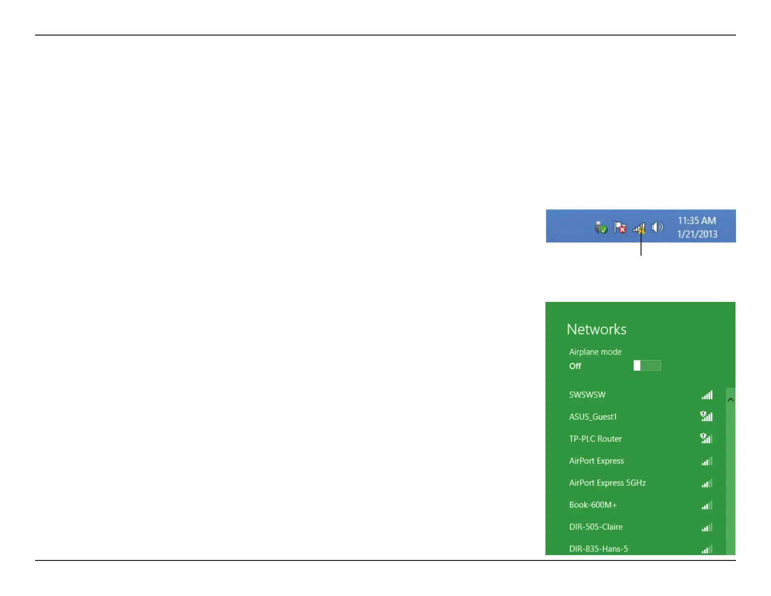 Clicking on this icon will display a list of wireless networks which are within connecting
