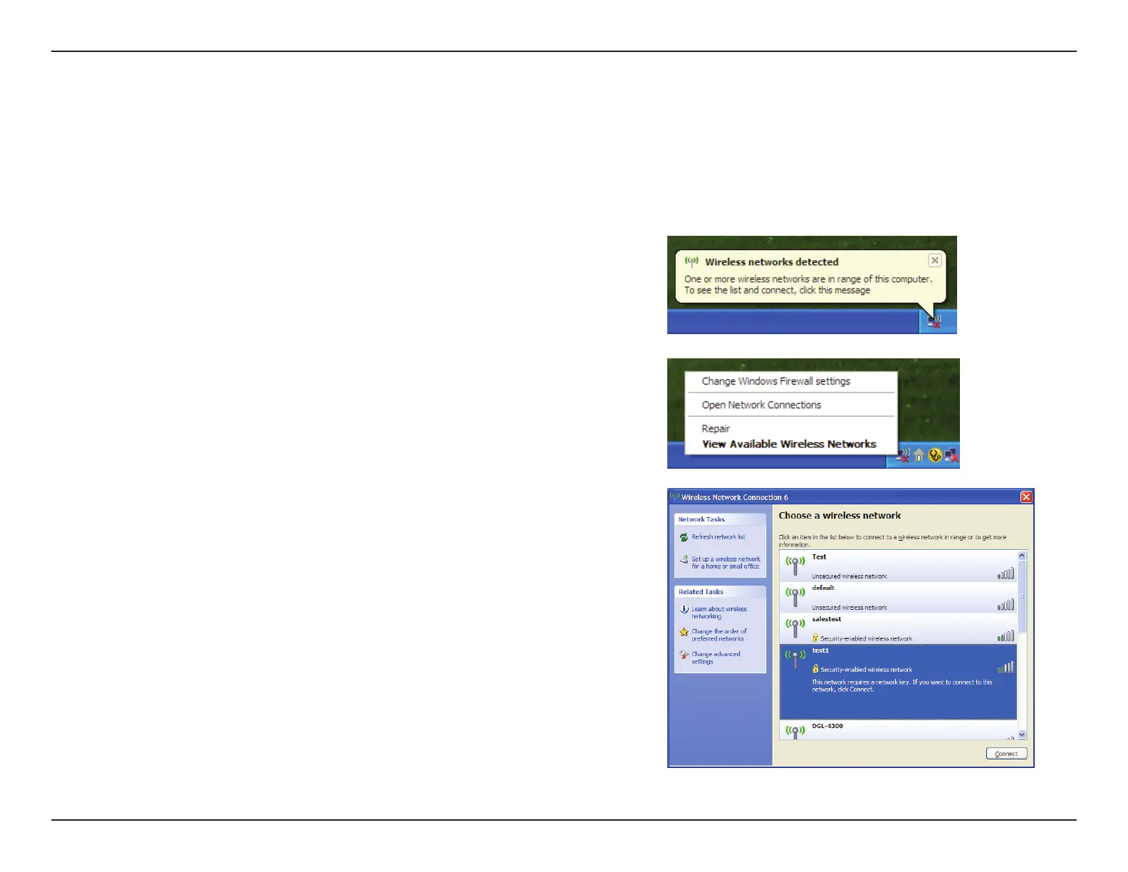 connecting to a wireless network. Most utilities will have a “site survey” option similar to the Windows® XP utility as seen below.