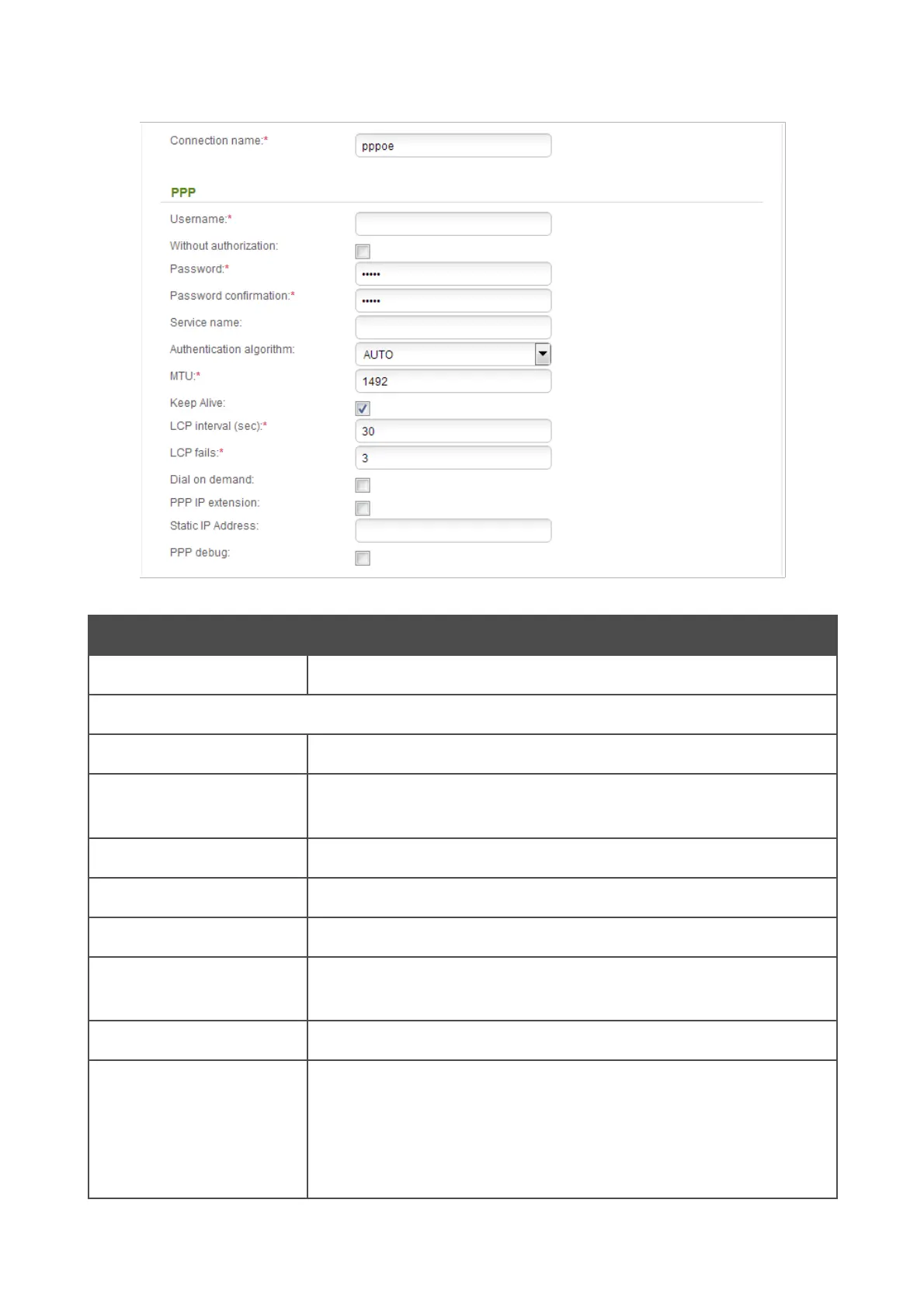 Figure 86. Configuring Static IP + PPPoE WAN connection. The expert settings mode. The PPP section.