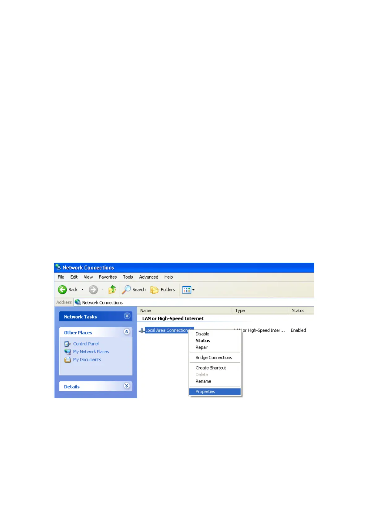 2. In the Network Connections window, right-click the relevant Local Area Connection