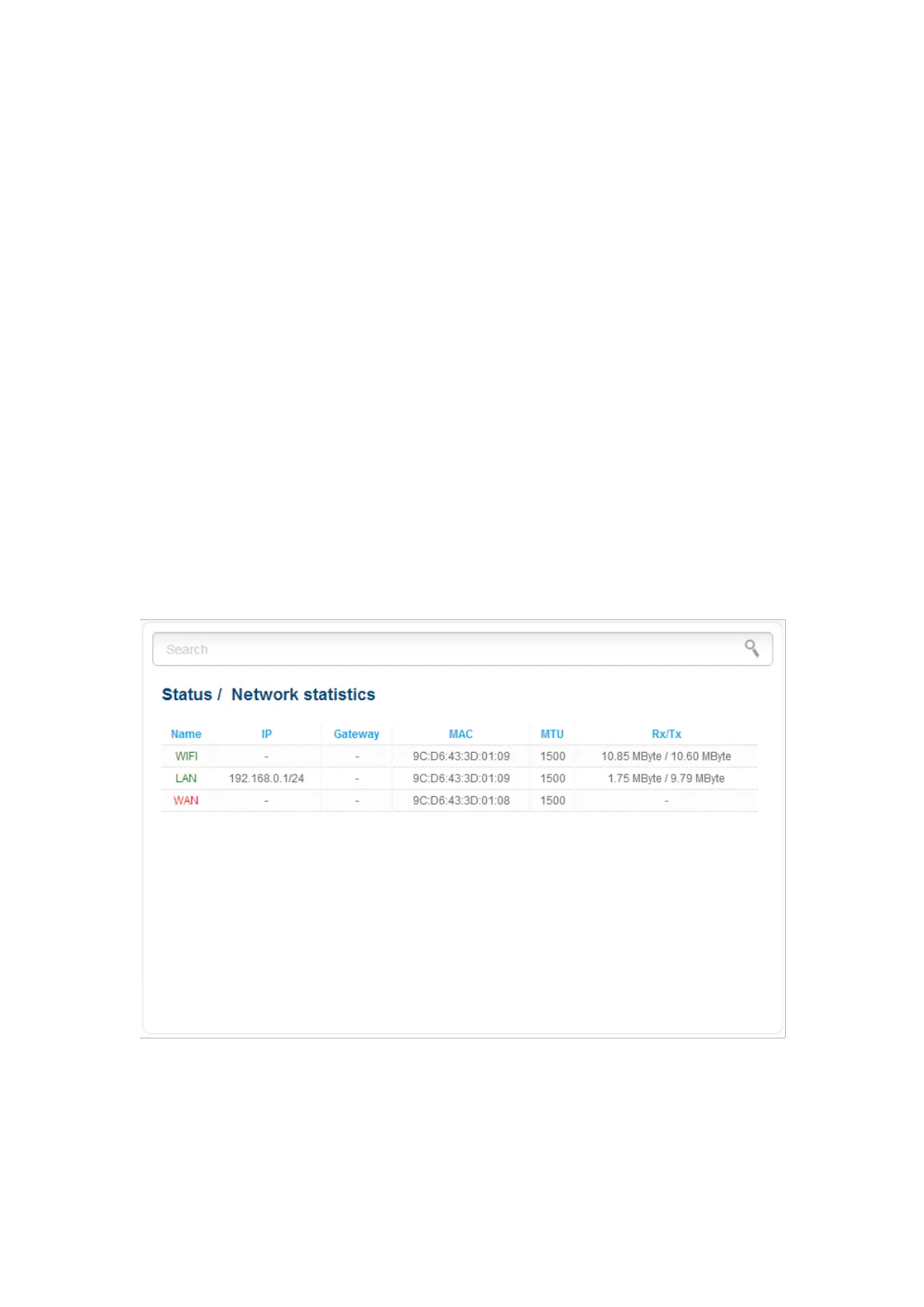 the system (WAN connections, LAN, WLAN). For each connection the following data are