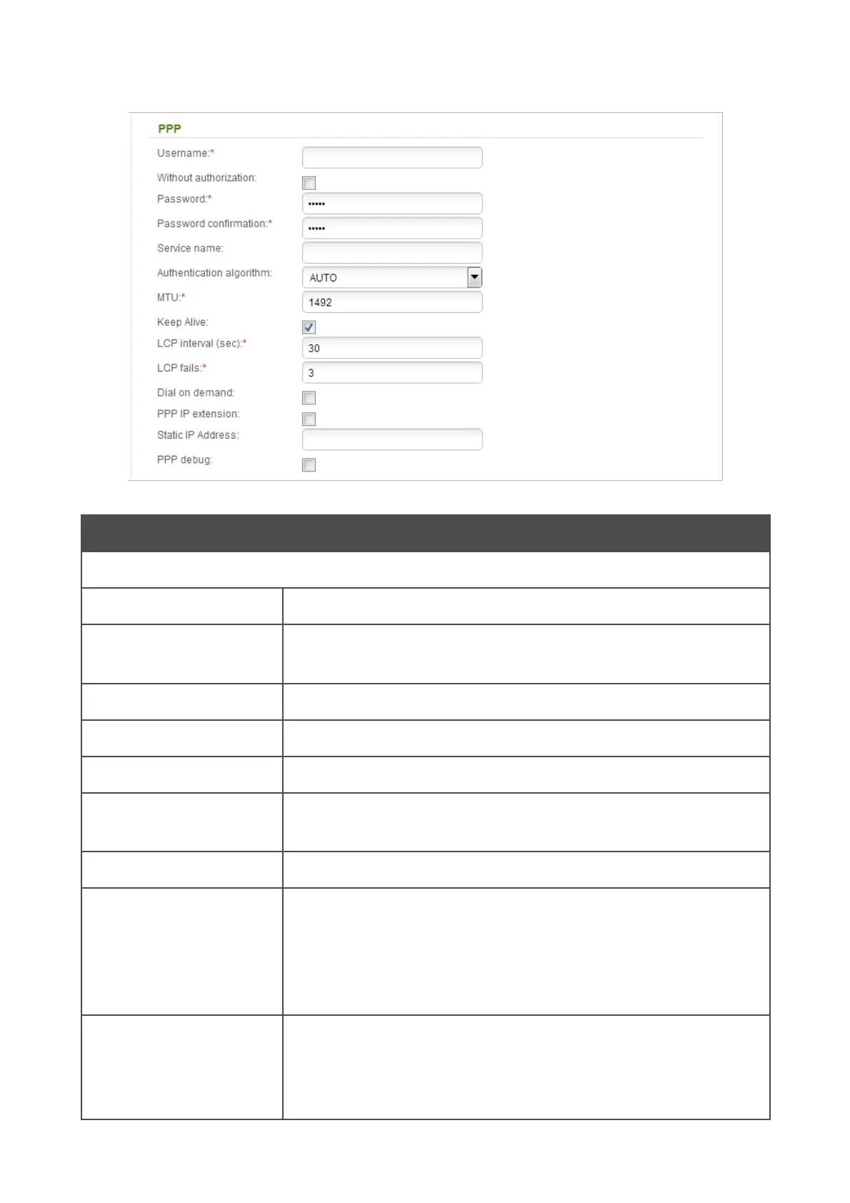 Password confirmation The confirmation of the entered password (to avoid mistypes).