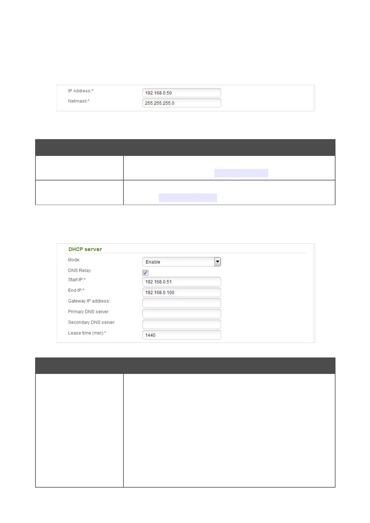 this value is selected, the DNS Relay, Start IP, End IP, Gateway