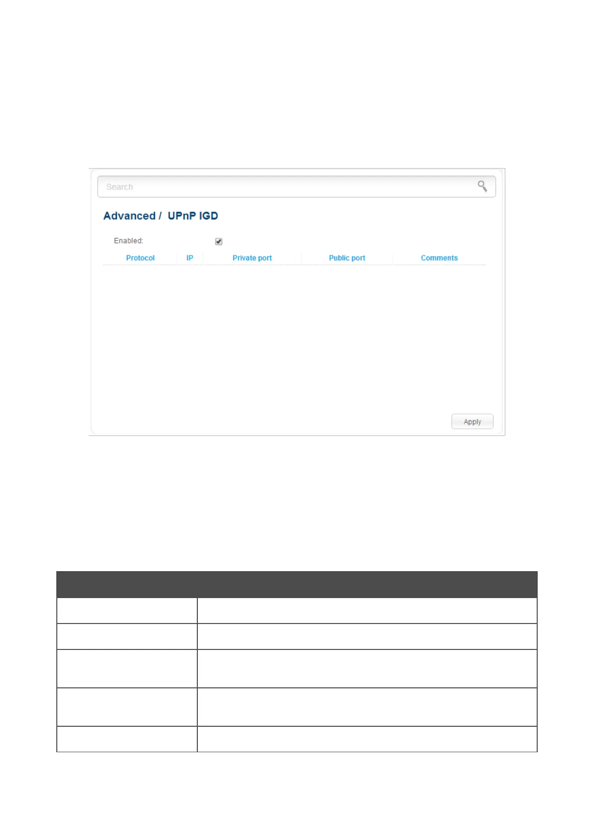 If you want to enable the UPnP IGD protocol in the access point, select the Enabled checkbox and