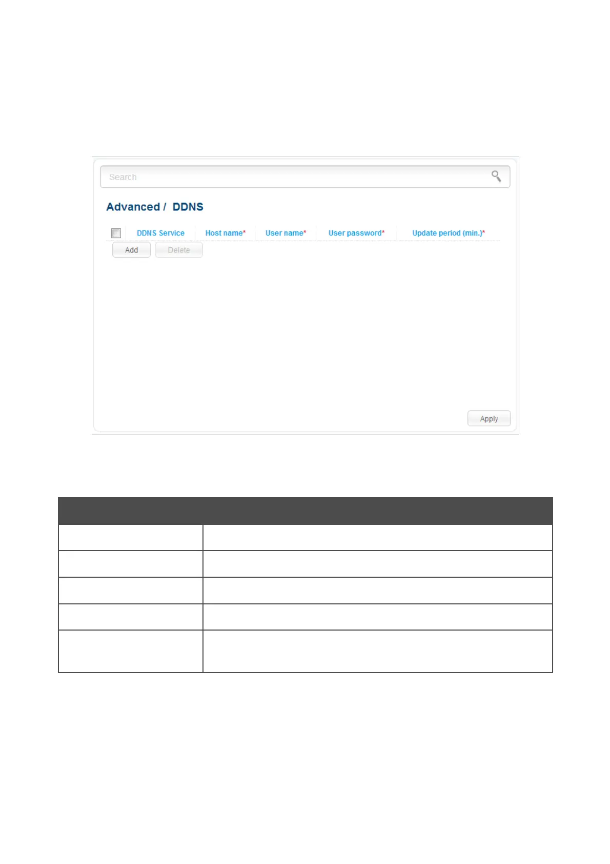 To add a new DDNS service, click the Add button. In the line displayed, you can specify the