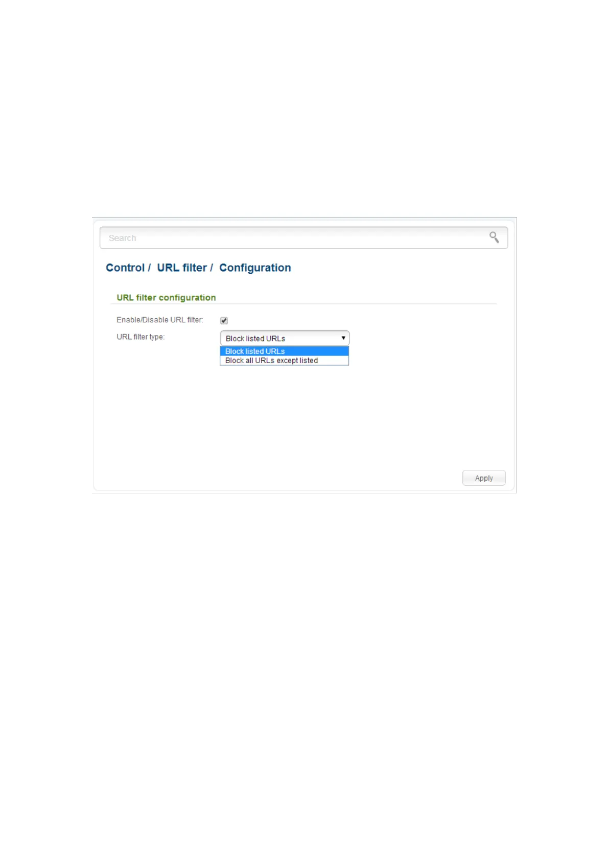 to addresses specified on the Control / URL filter / Configuration page and blocks
