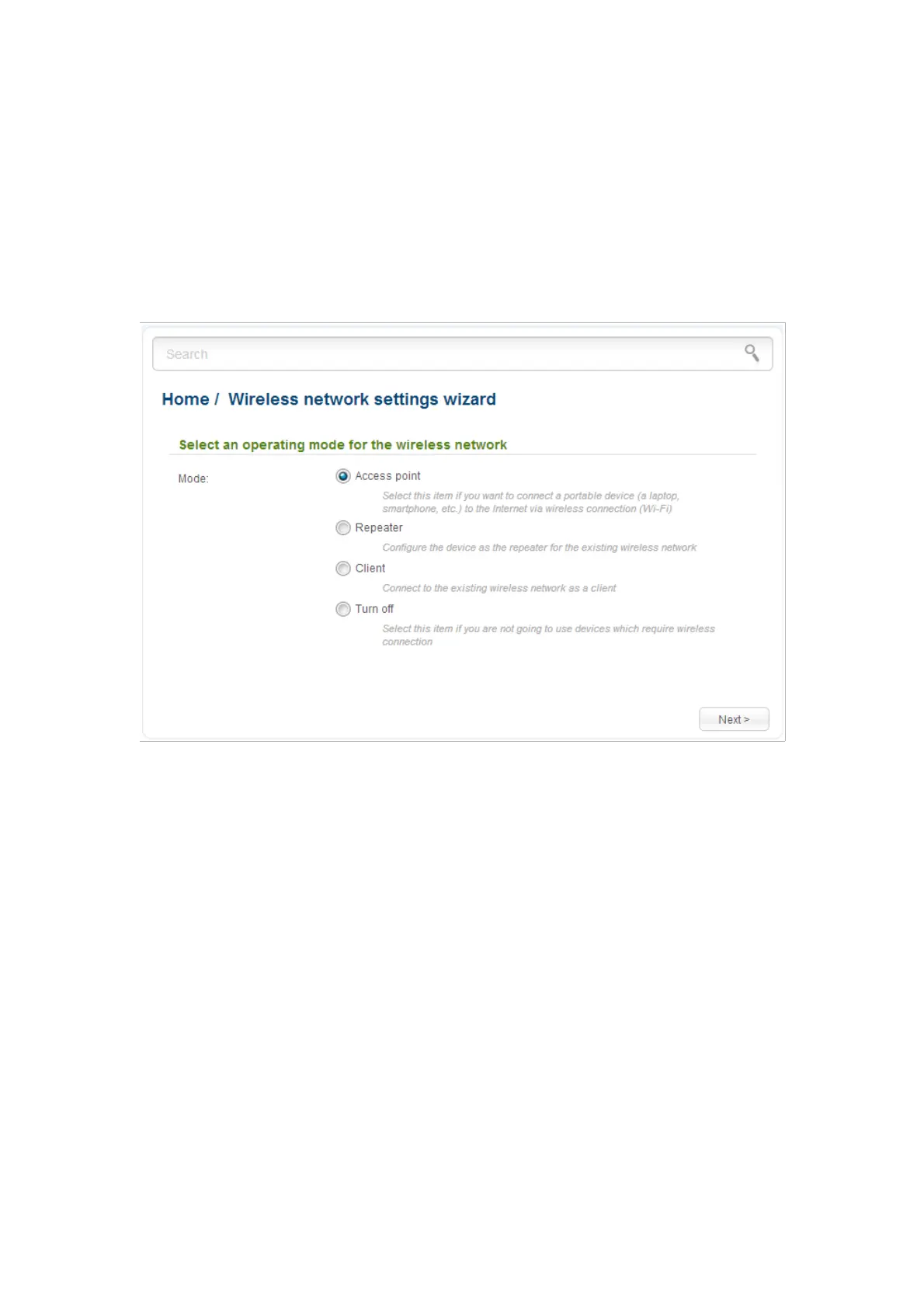 Figure 25. The page for selecting the operating mode for the wireless network.
