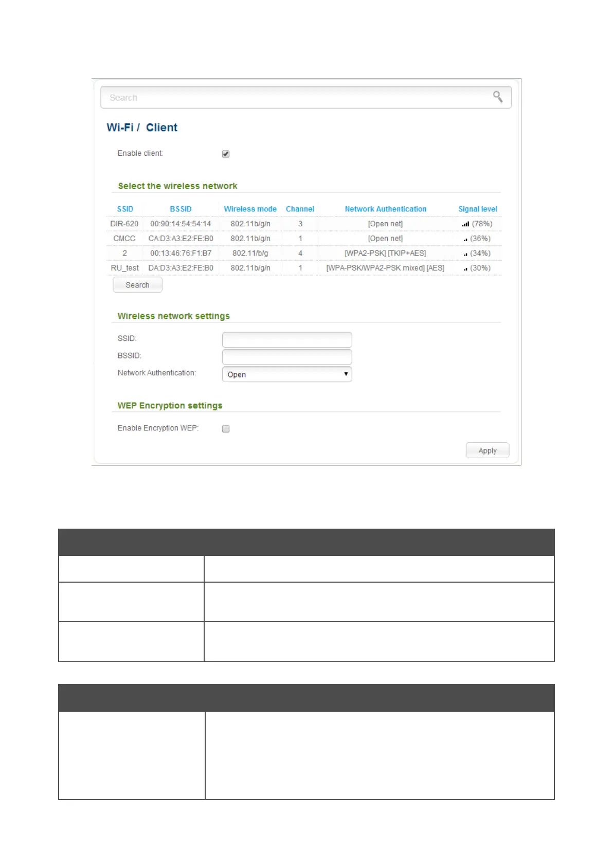 To configure the access point as a client, select the Enable client checkbox. When the checkbox is
