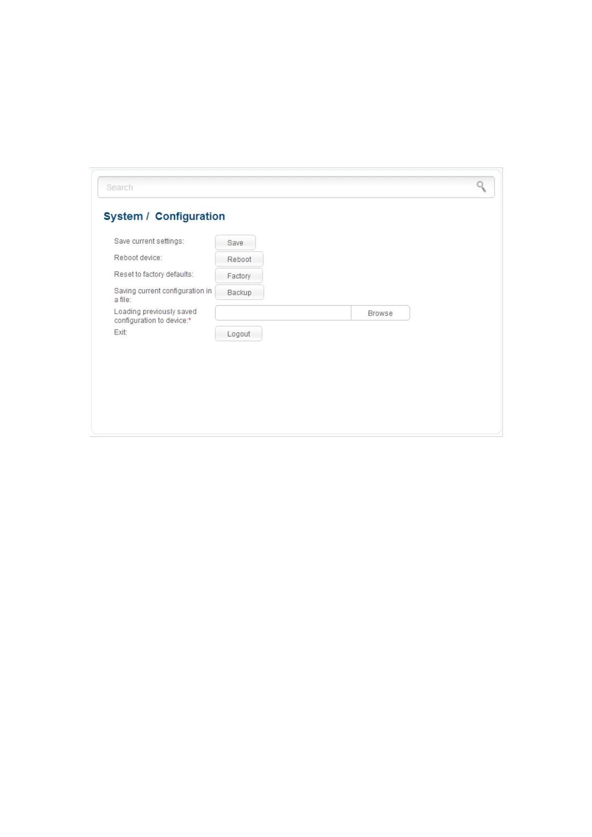 On the System / Configuration page, you can reboot the device, save the changed settings to the