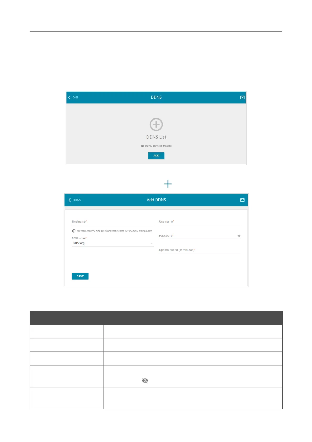 To add a new DDNS service, click the ADD button ( ).