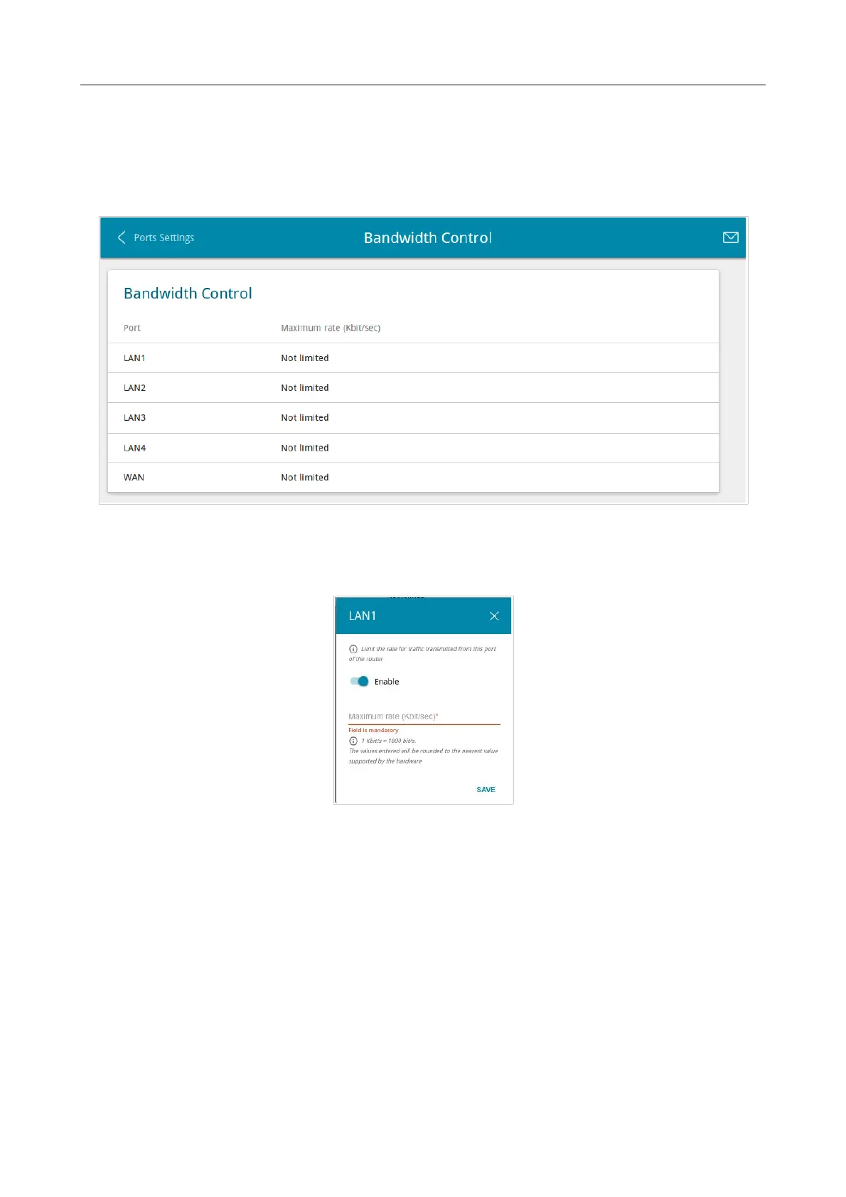 transmitted traffic rate for this port in the Maximum rate field. Then click the SAVE button.