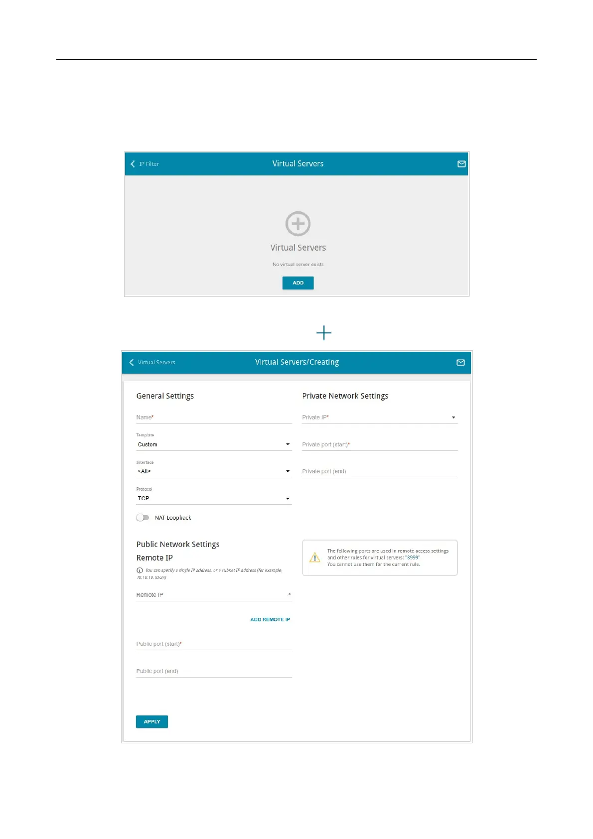 To create a new virtual server, click the ADD button ( ).