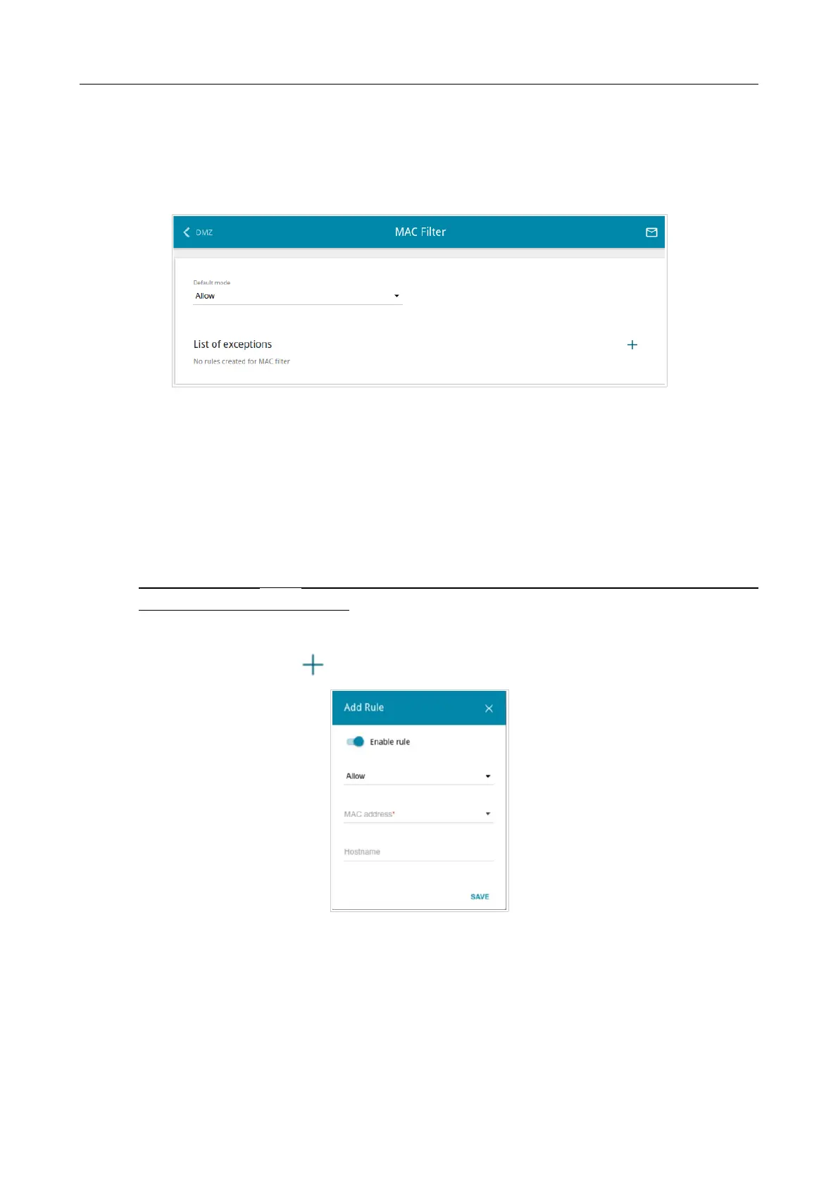 To create a rule (specify a MAC address of a device for which the specified filtering mode will be