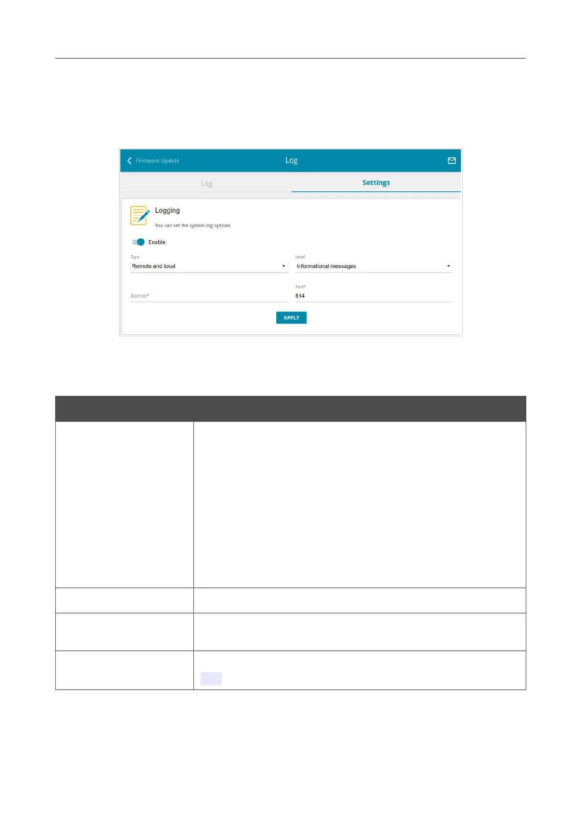 On the System / Log page, you can set the system log options and configure sending the system