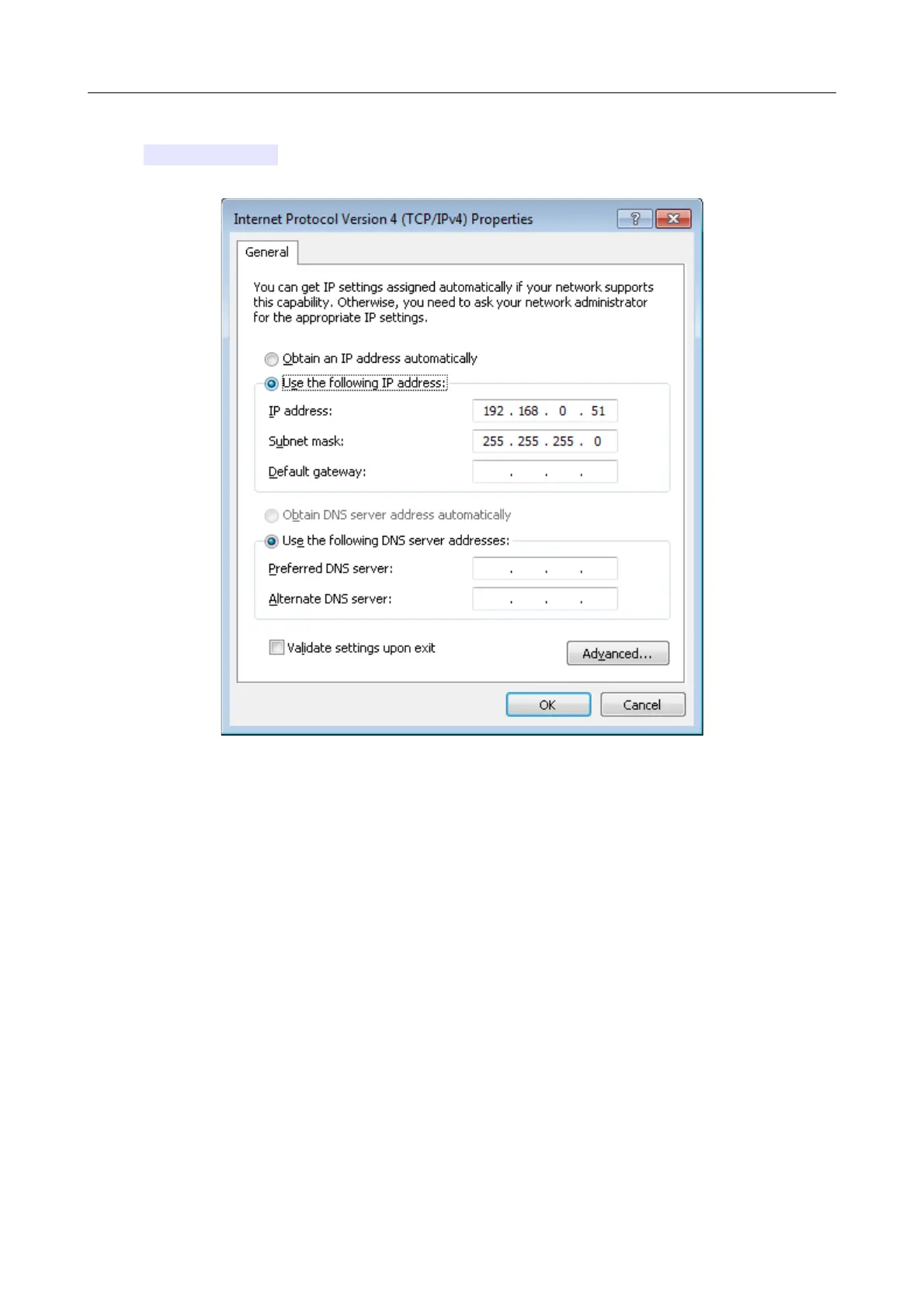 Figure 7. The Internet Protocol Version 4 (TCP/IPv4) Properties window.