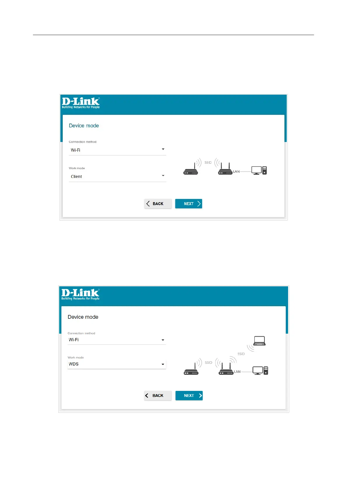 Figure 26. Selecting an operation mode. The WDS mode.