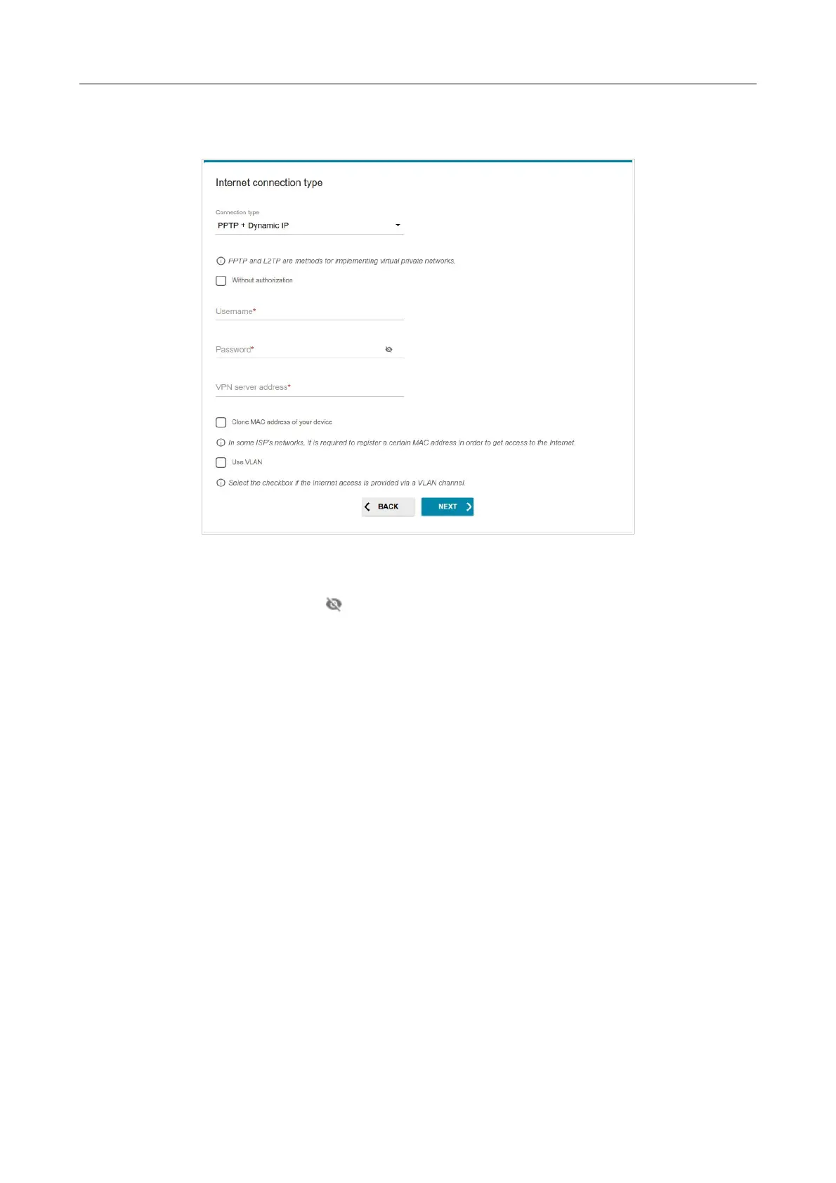 your ISP. Click the Show icon ( ) to display the entered password. If authorization is not