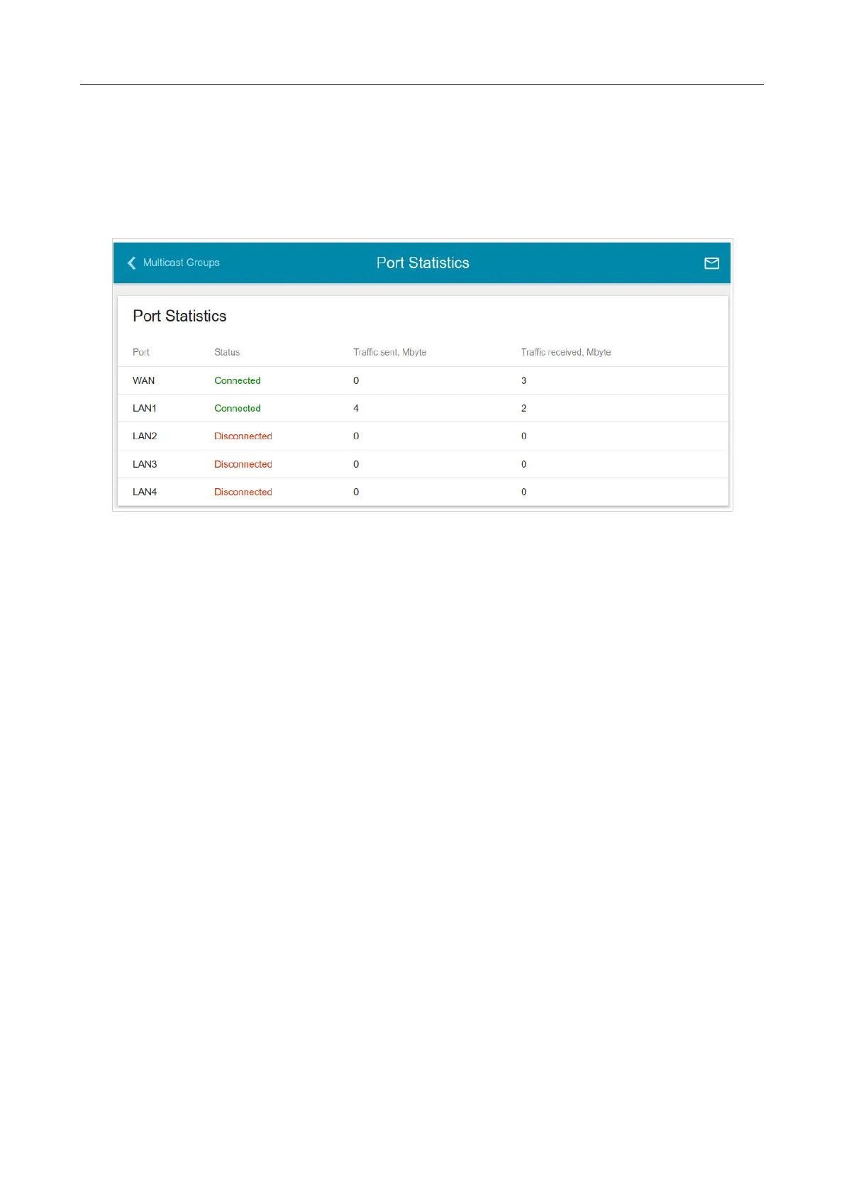 On the Statistics / Port Statistics page, you can view statistics for traffic passing through ports