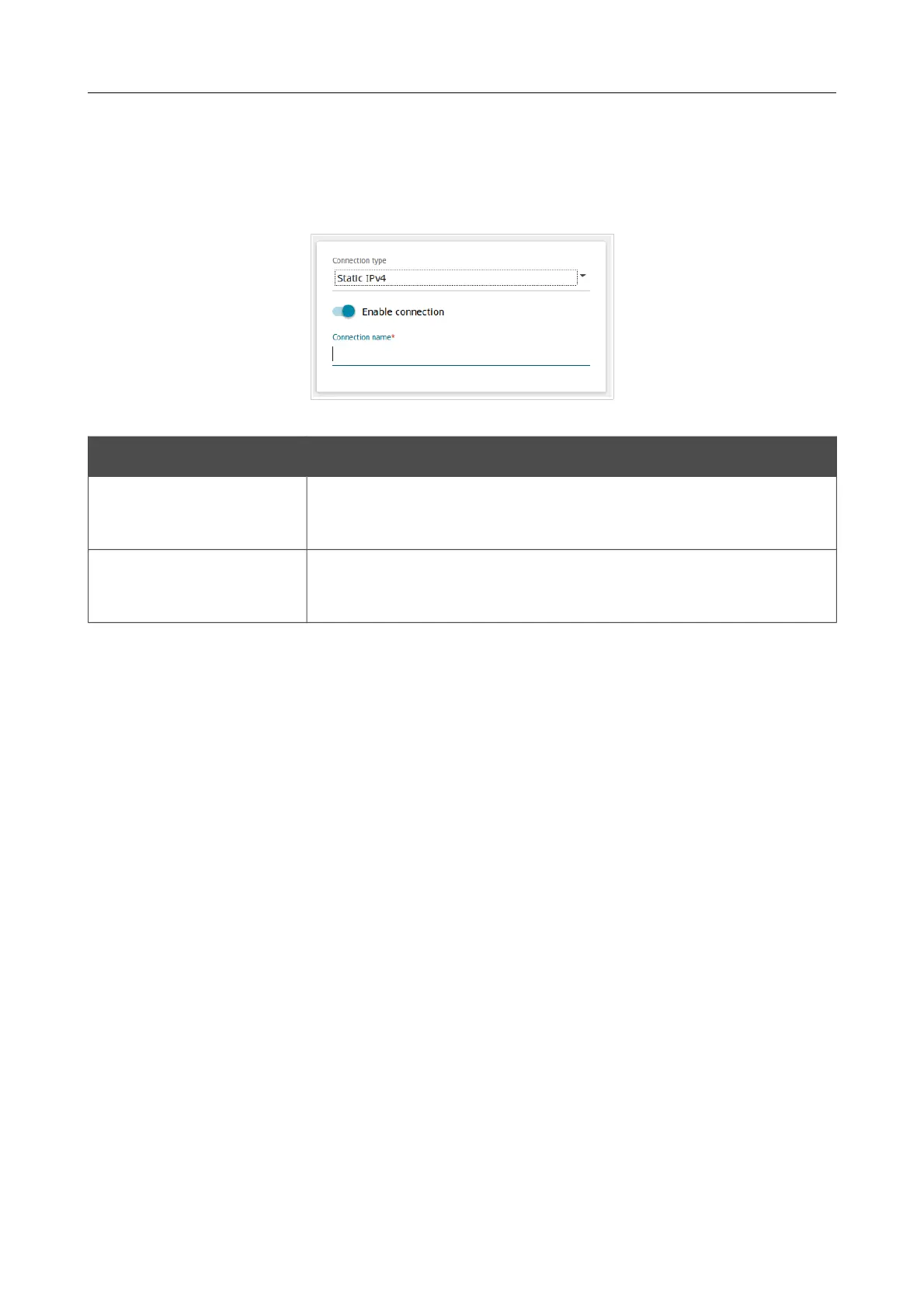 Figure 54. The page for creating a new Static IPv4 connection. Selecting a connection type.