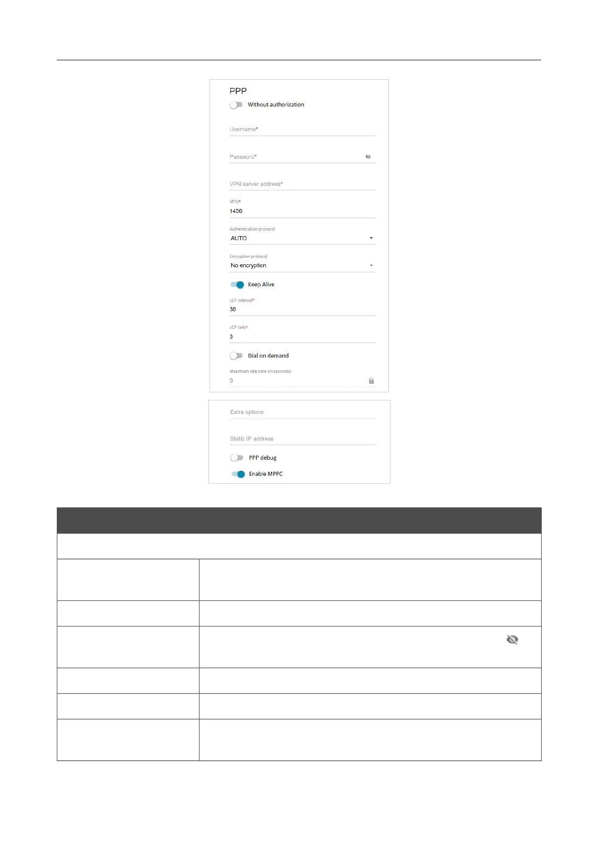 Figure 63. The page for creating a new PPTP connection. The PPP section.