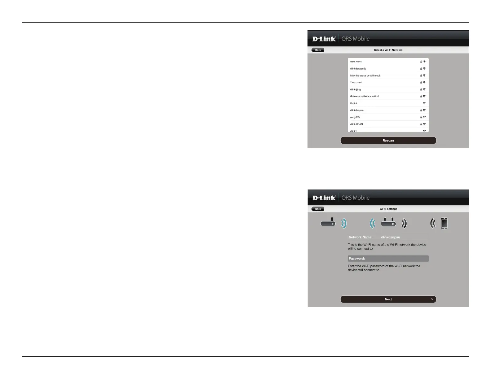 QRS Mobile will rst detect your DAP-1365, then scan for available