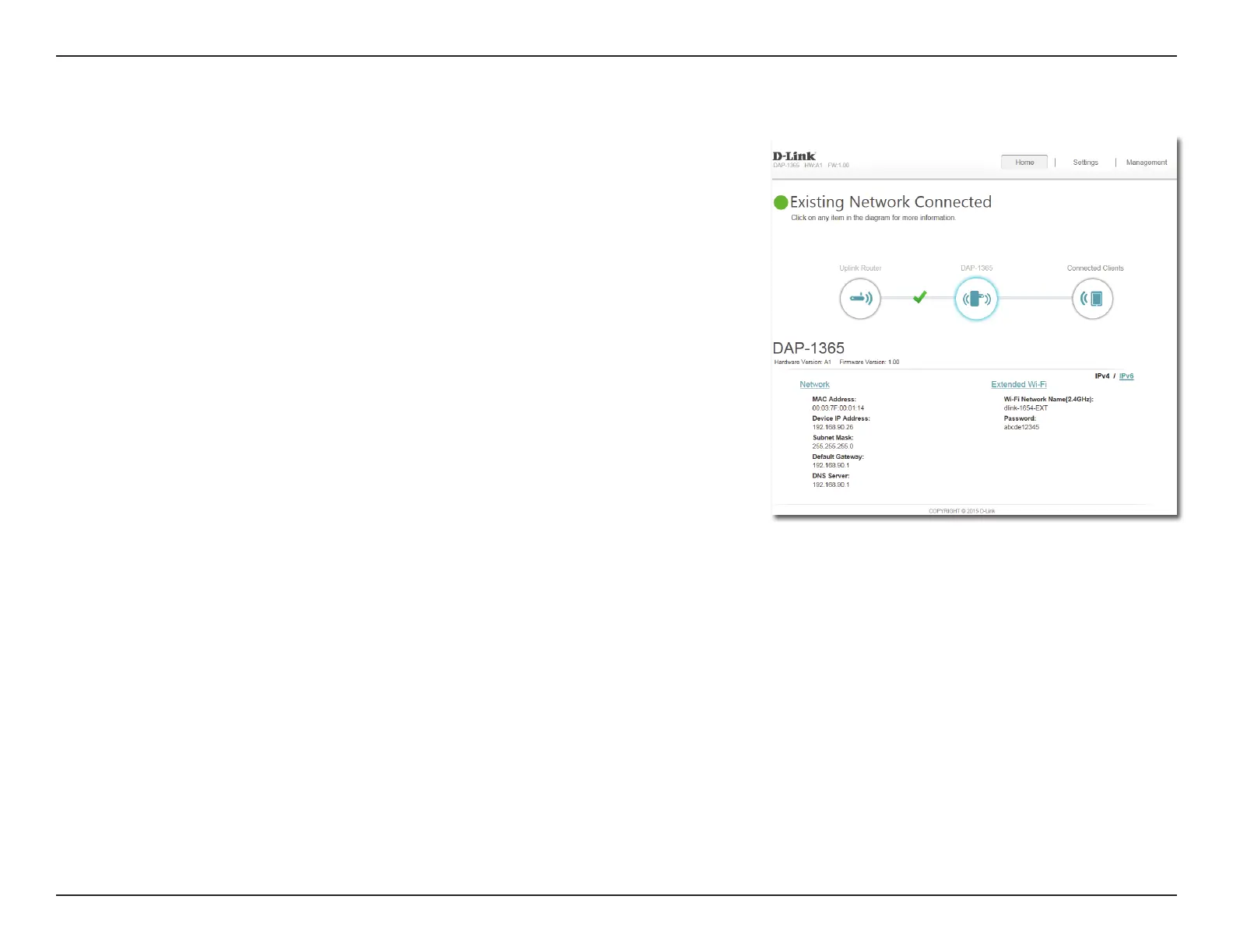 To view the DAP-1365’s Network and Wi-Fi information, click on the DAP-1365