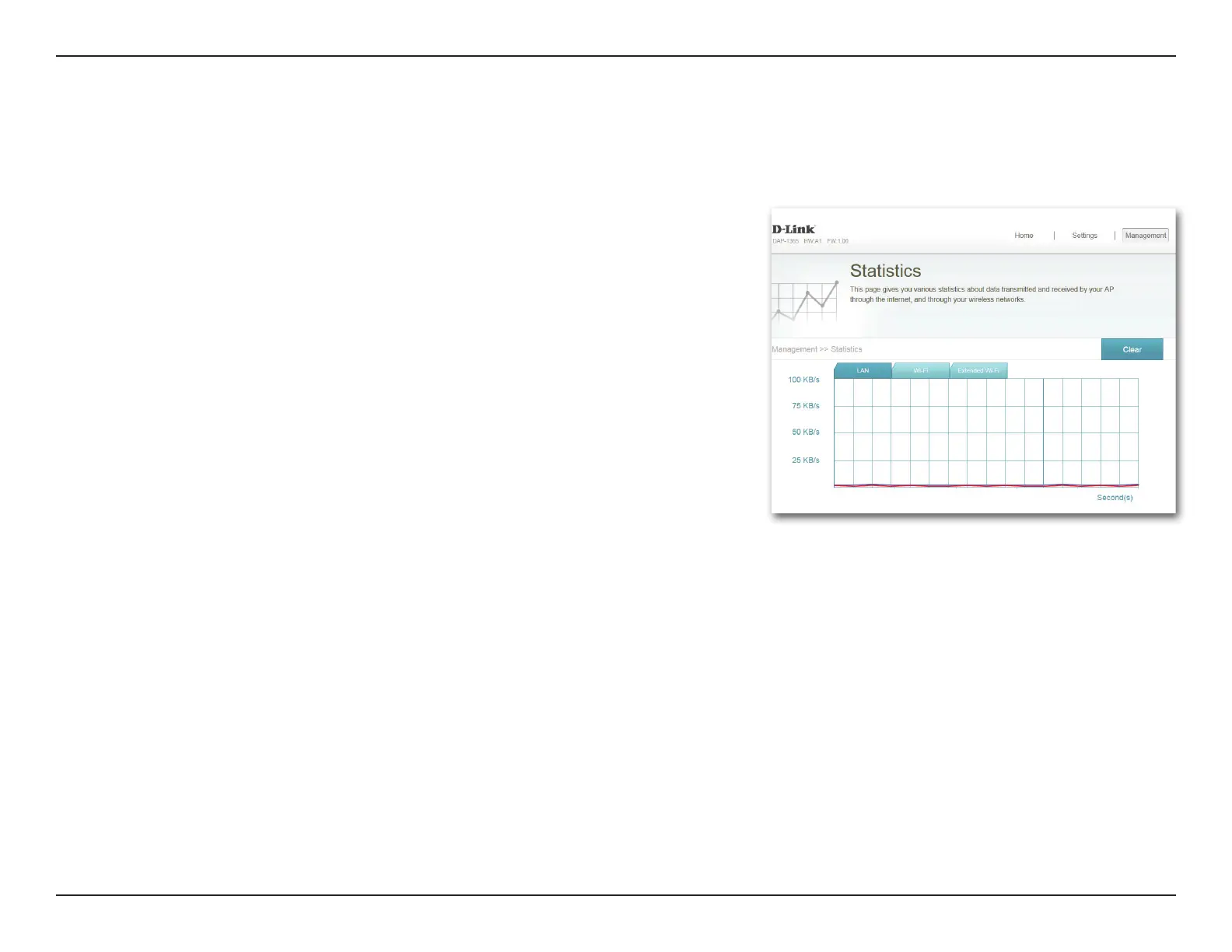 Click on the various tabs to display the statistics for the various interfaces on the DAP-1365.