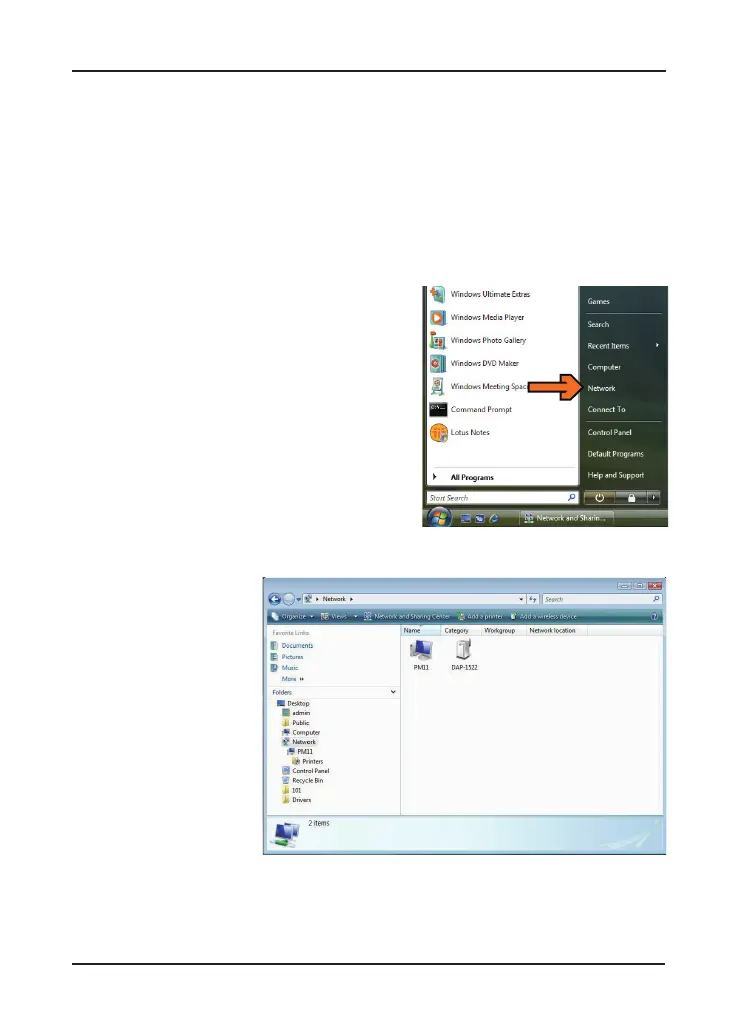 1. Pada PC anda buka menu Windows®. Klik “Network”