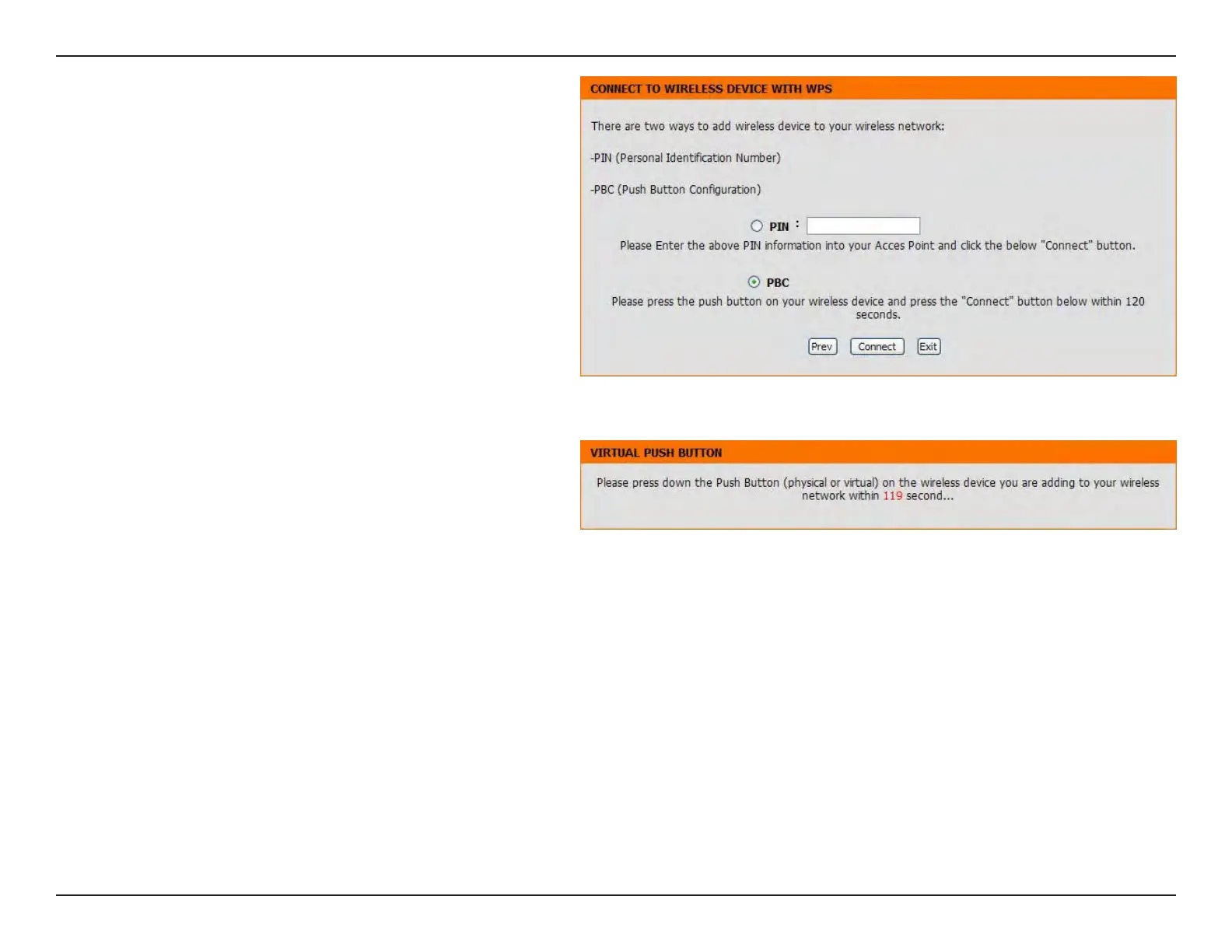 Select PBC to use the Push Button Conguration in