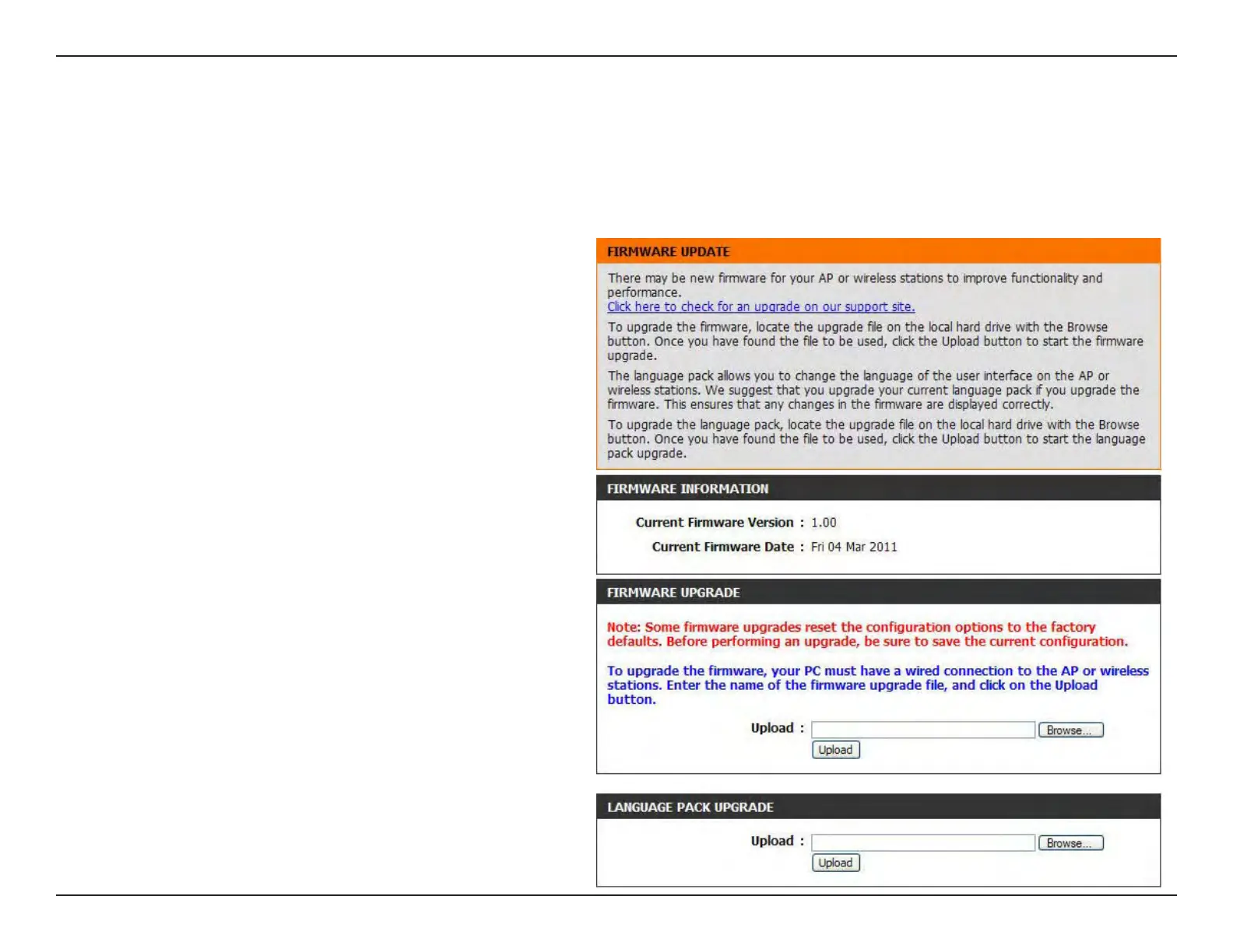 You can upgrade the rmware of the access point here. Please check the D-Link support site for rmware updates at