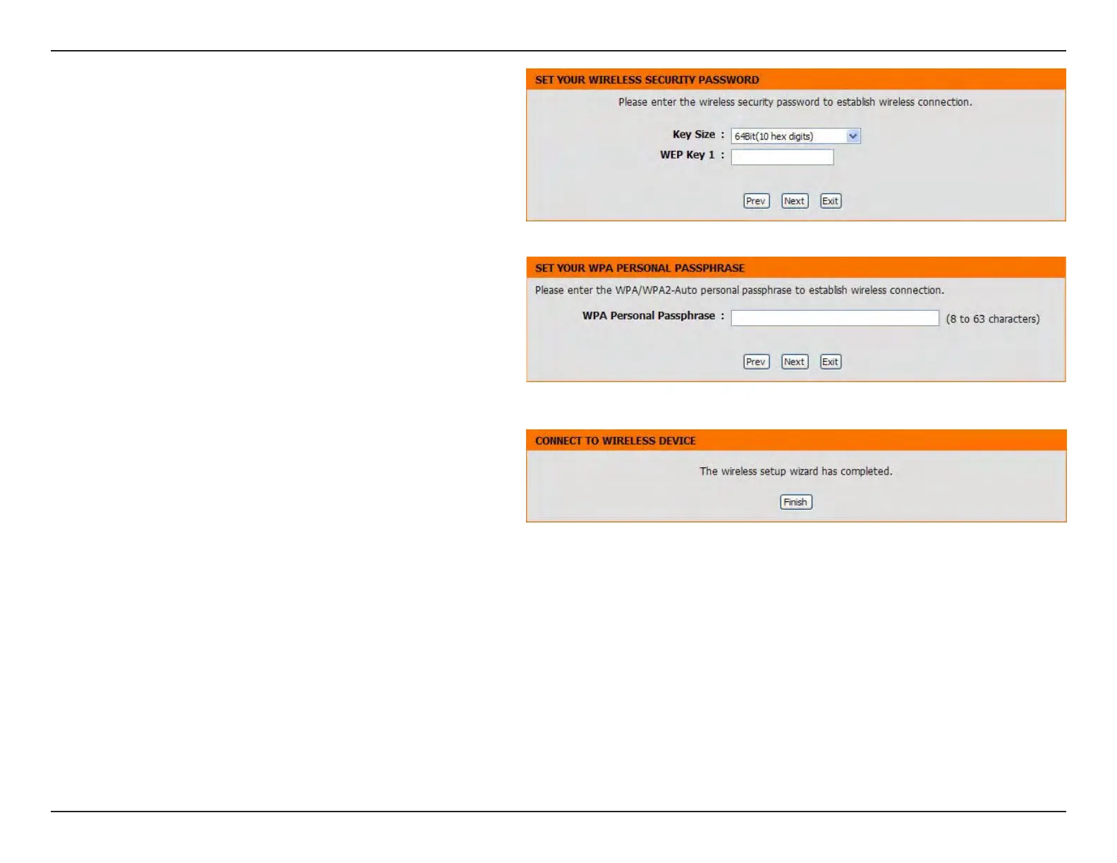 If you choose WEP, enter the wireless security