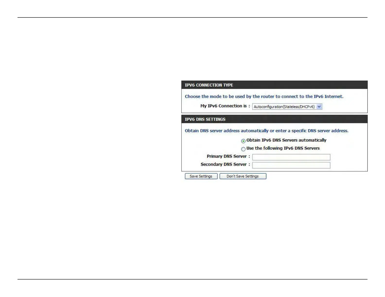 section will vary based on the selected mode. Select Autoconguration (Stateless/DHCPv6) to see the following