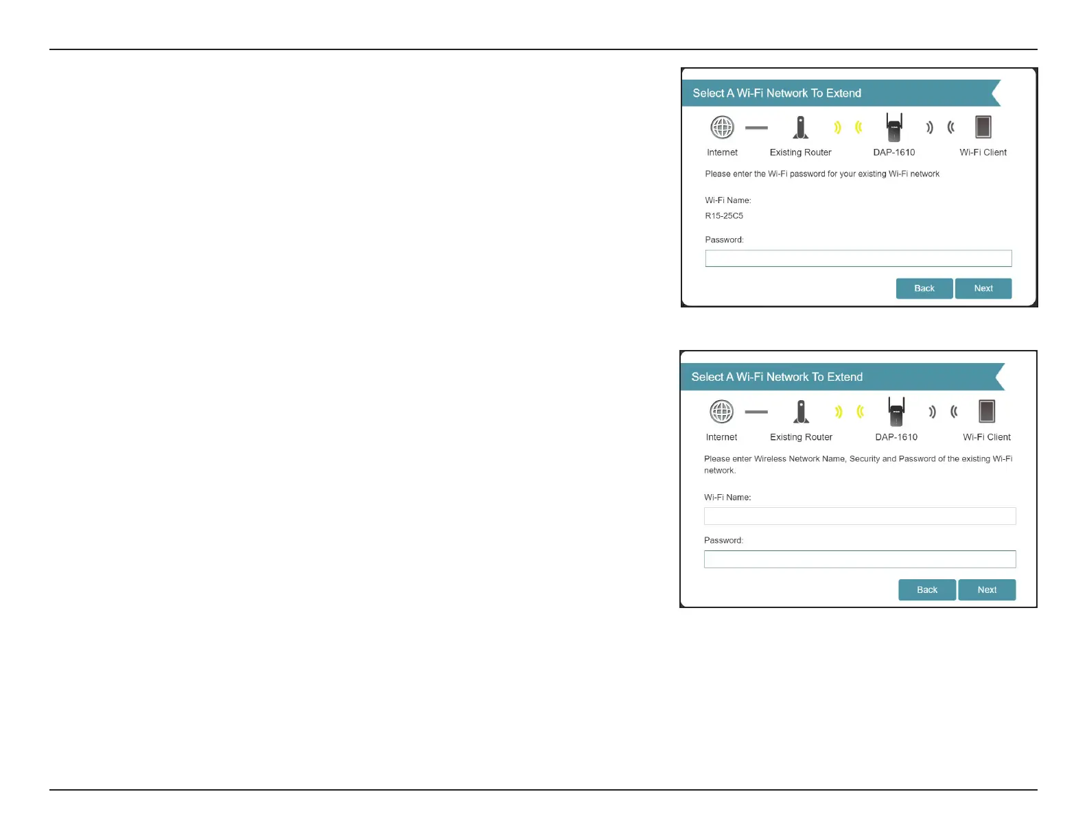 If the wireless network you wish to extend was detected by the scan, enter the