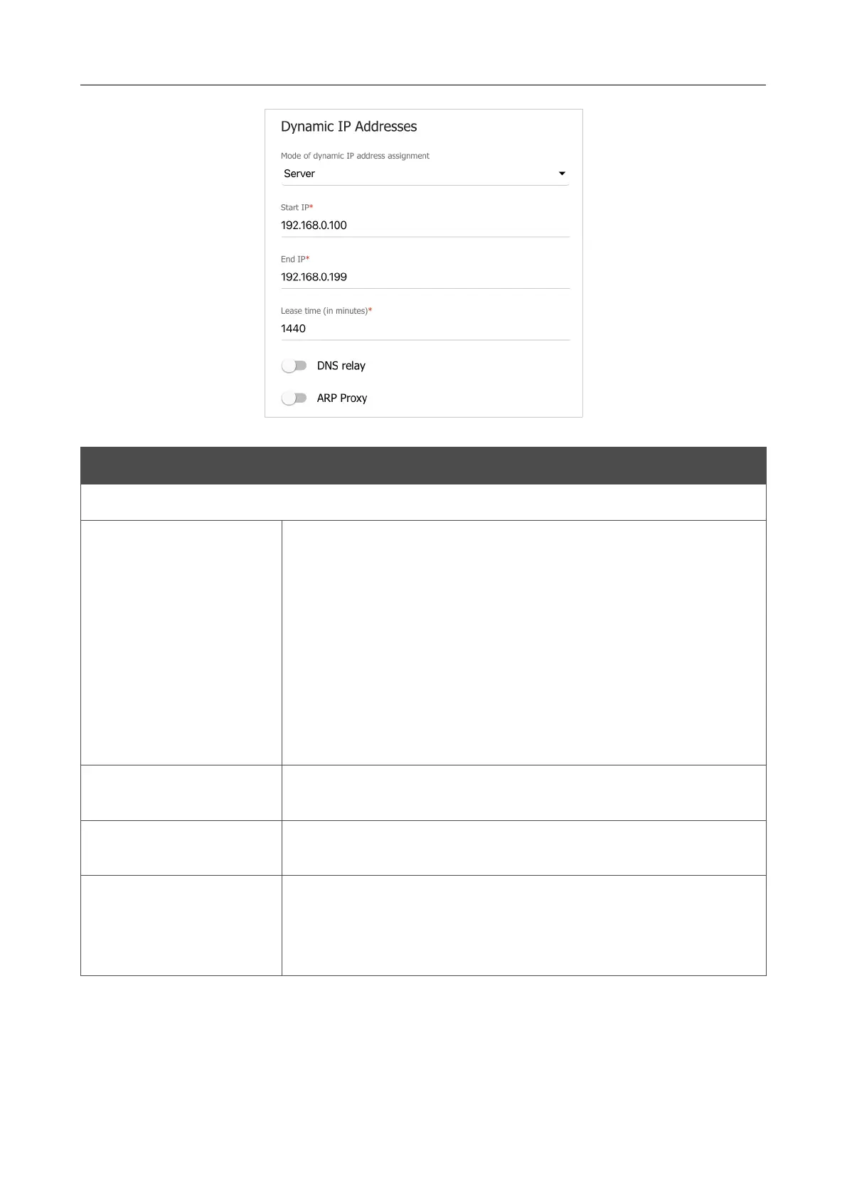 The lifetime of IP addresses leased by the DHCP server. At the end
