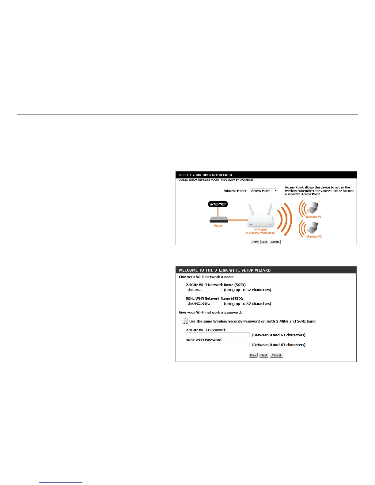 The Wi-Fi Connection Setup Wizard will assist you in conguring your DAP-1665 as an access point, allowing you to connect