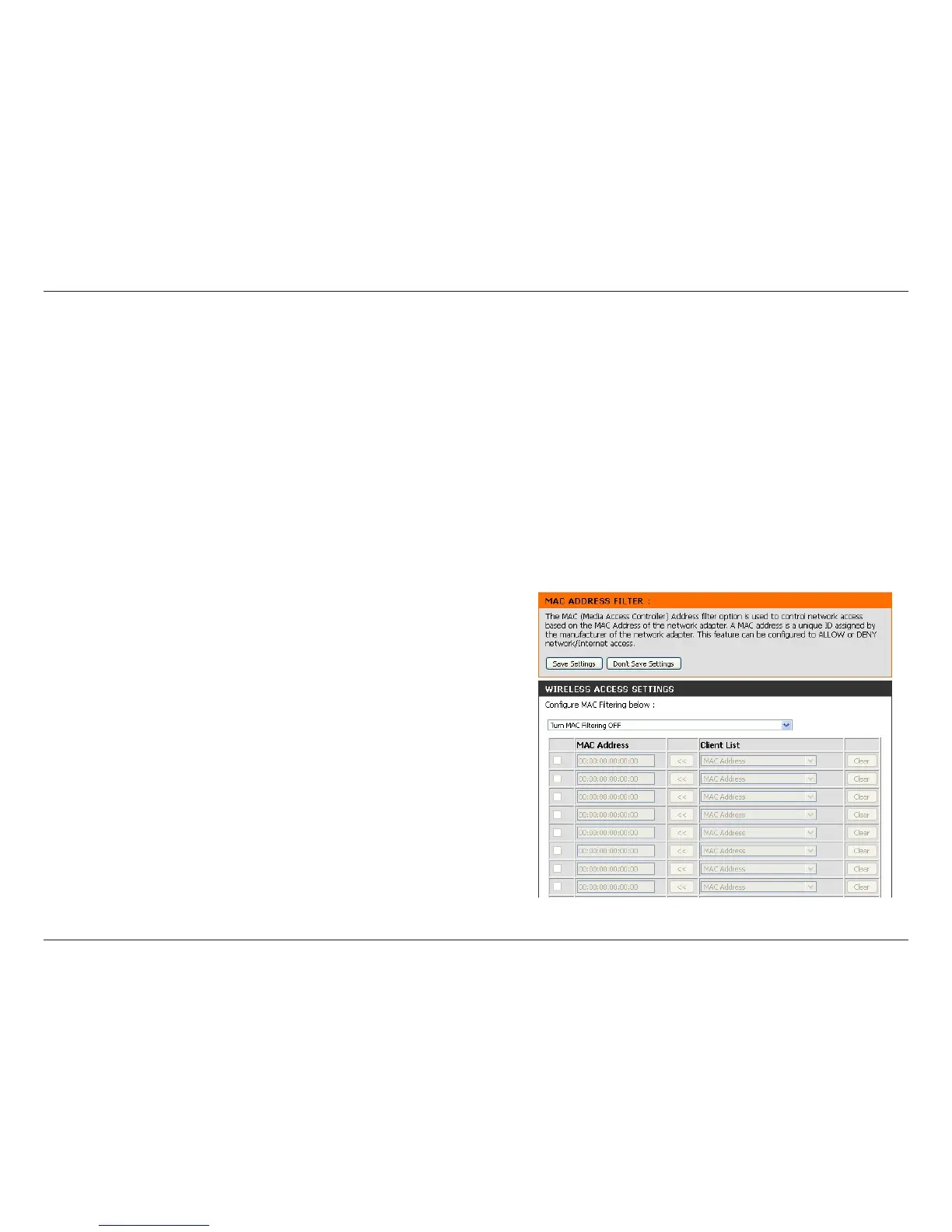 Mac (Media Access Controller) ltering allows you to control wireless access to your network according to clients’ MAC addresses.