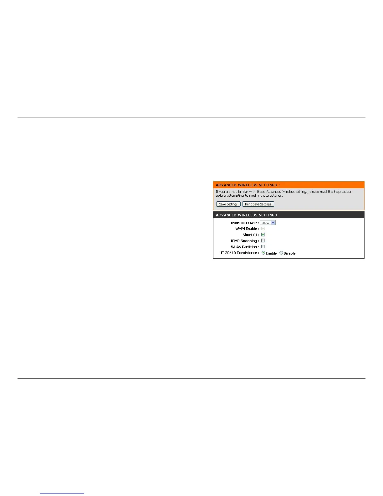 From this page, you can adjust the Advanced Wireless Settings. We recommend that you leave these settings at default values.