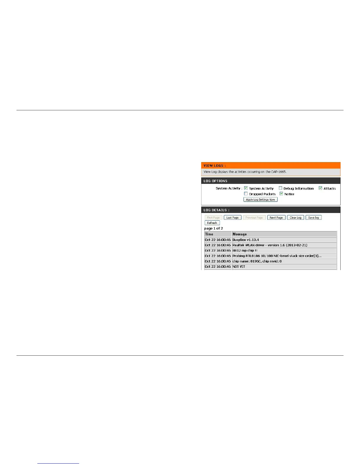 TheDAP-1665 keeps a running log of events and activities occurring on the access point. If the device is rebooted, the logs will