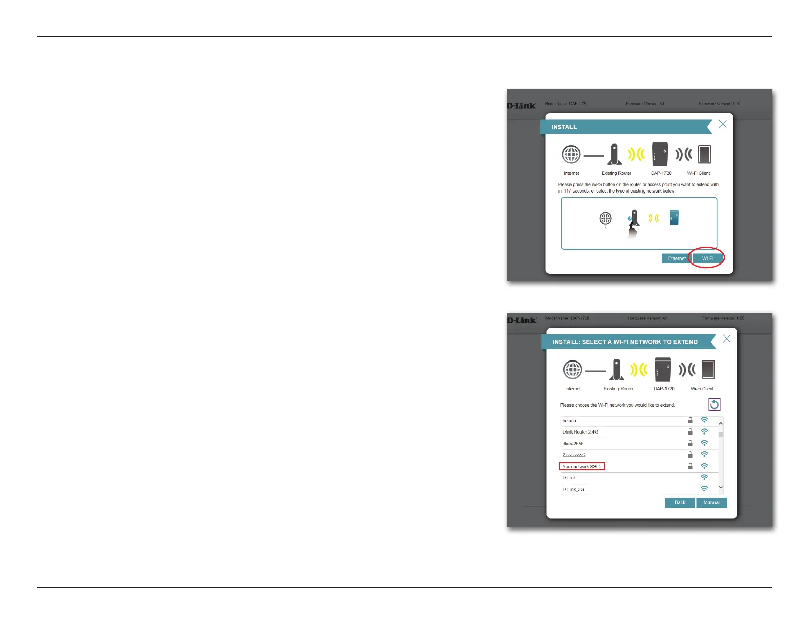 • If the network you would like to extend was not detected by the scan, click the