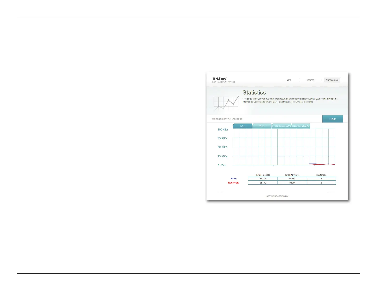 menu at the top of the page, and select Statistics. Click Clear to reset the statistics.