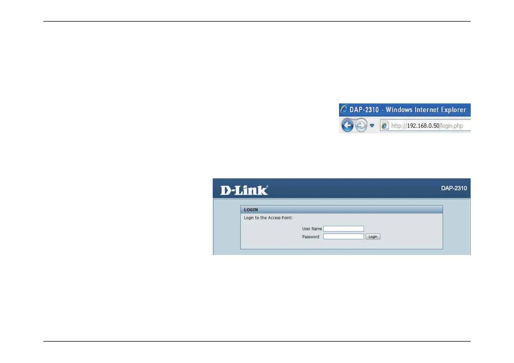 Note: If you have changed the default IP address assigned to the DAP-2310, make sure to enter the correct IP address.