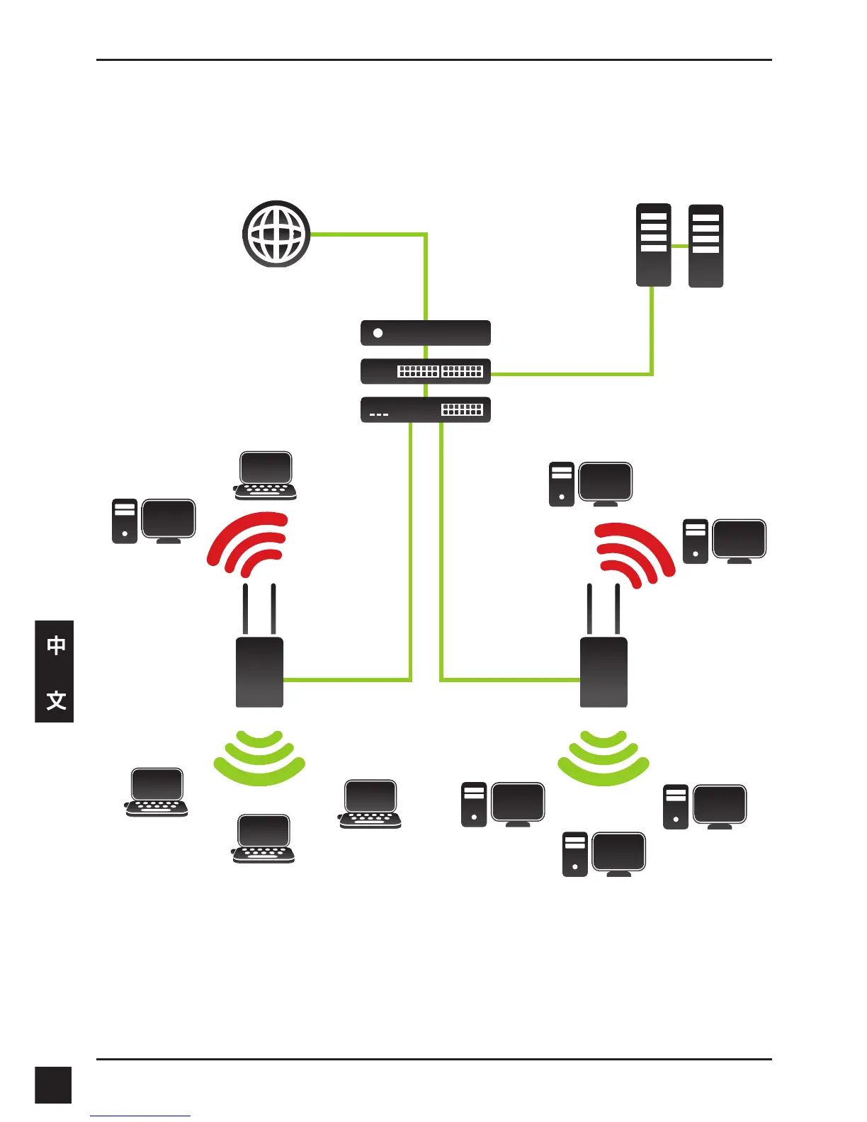 當您完成無線基地台的安裝與設定,您的網路架構應該如同下圖所示: