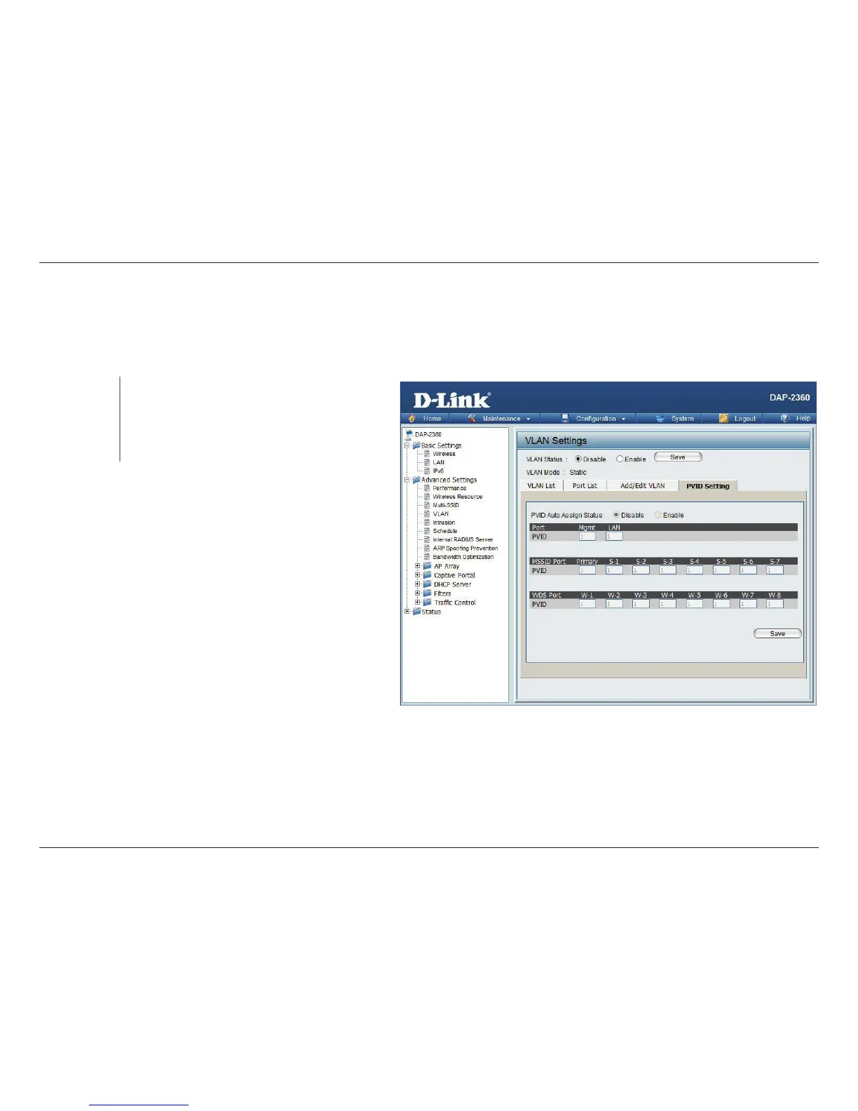 The PVID Setting tab is used to enable/disable the Port VLAN Identier Auto Assign Status as well as to congure various types