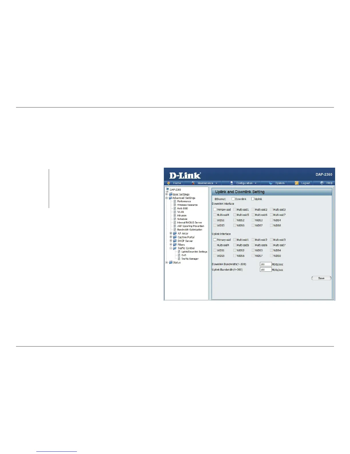 uplink and downlink settings are nished, click the Save button to let your changes take eect.