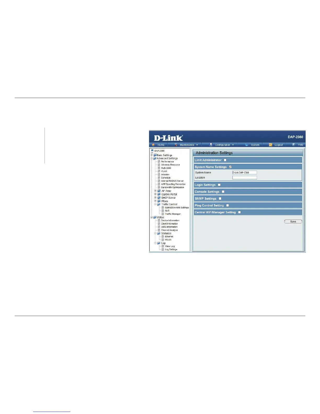 Each of the ve main categories display various hidden administrator parameters and settings.