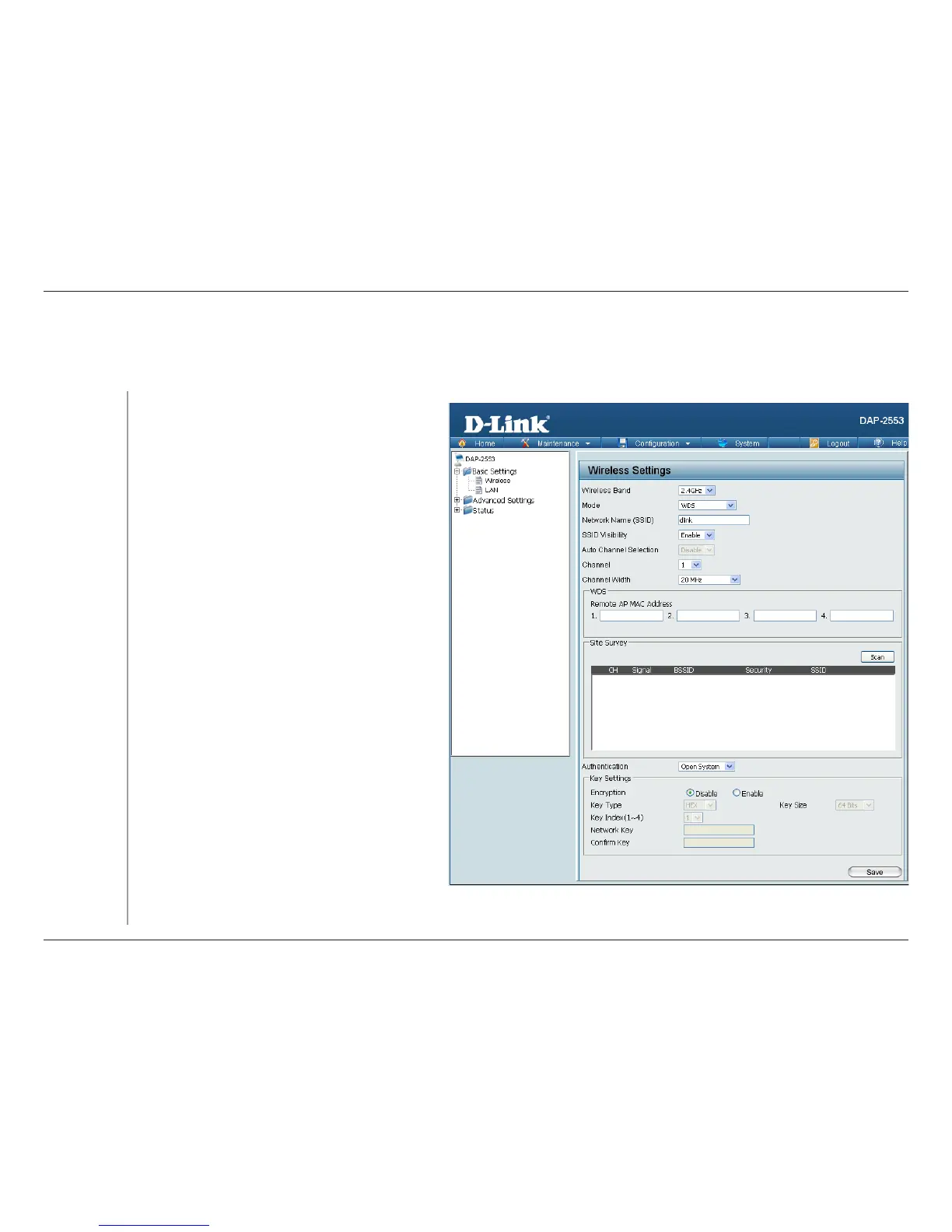 In WDS mode, the DAP-2553 wirelessly connects multiple networks, without functioning as a wireless AP.