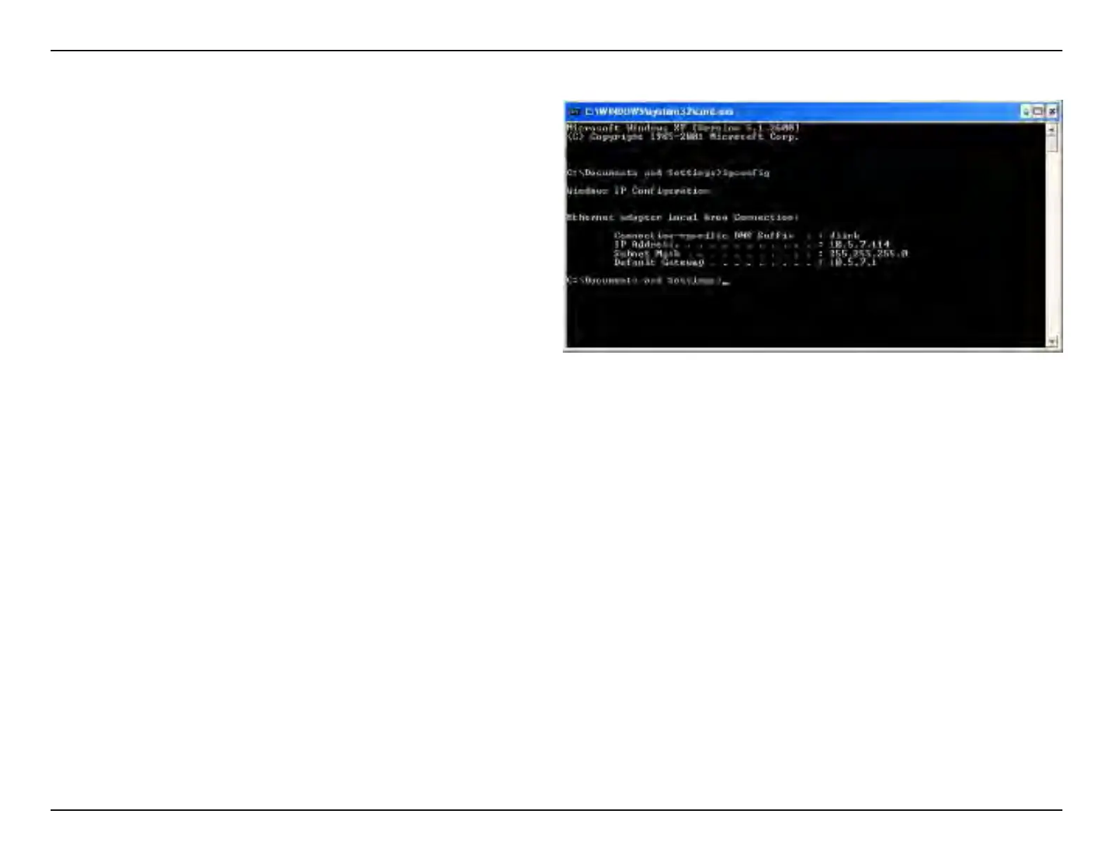 This will display the IP address, subnet mask, and the default gateway of