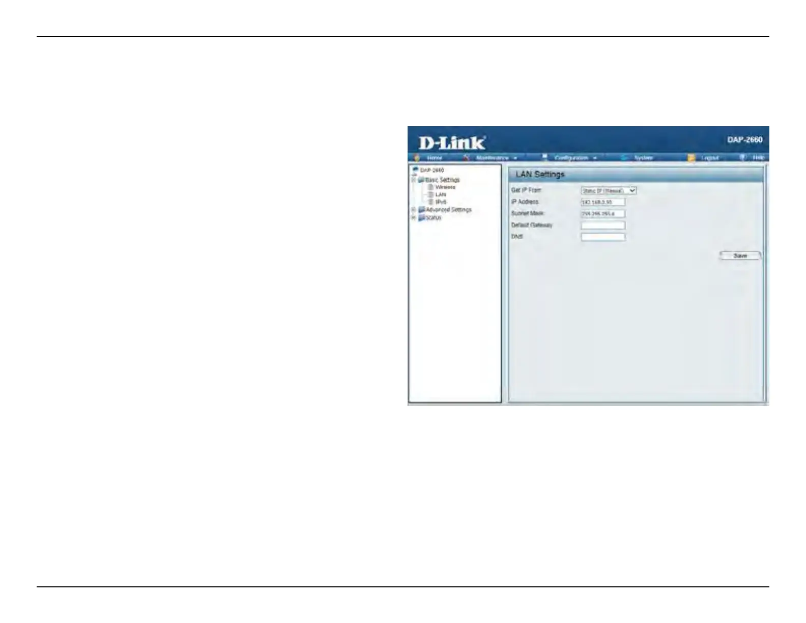 LAN is short for Local Area Network. This is considered your internal network. These are the IP settings of the LAN interface for the DAP-2660.