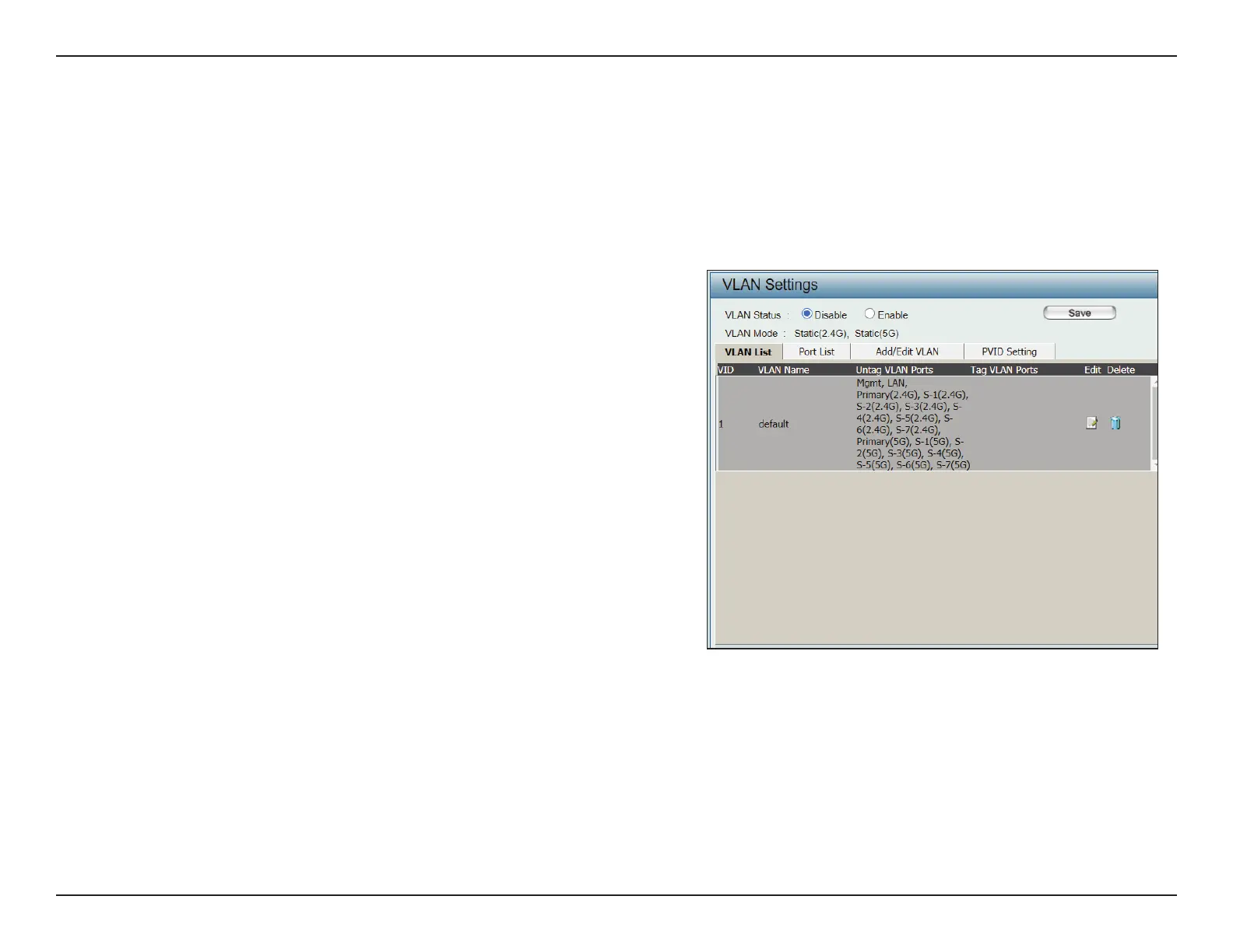 Clink the icon to edit the current VLAN.